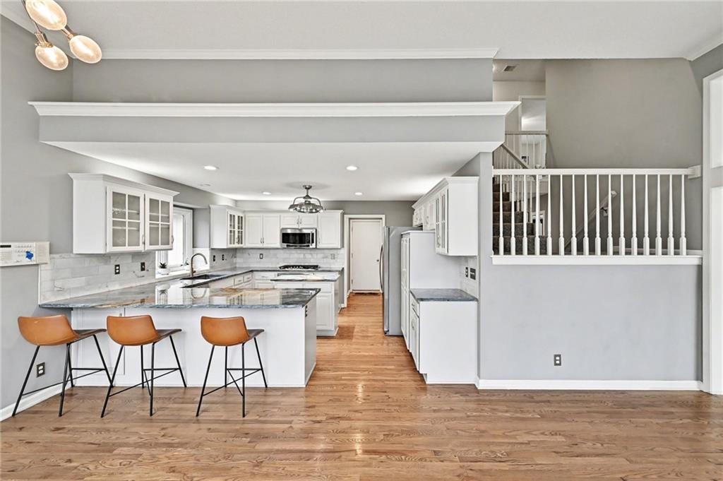 Looking for a 4-bedroom, 4.5-bathroom home in a neighborhood community with amenities? 5529 Sleepy Hollow Drive in Riss Lake Neighborhood is what you've been waiting for! This home is located at the end of a quiet cul-de-sac sitting on a 0.81-acre treed lot with no direct neighbor behind, creating a serene and private backyard setting! Greeted into the home in a foyer open to a home office with French doors, formal dining space, and formal living room with large windows overlooking two levels of decks. An updated kitchen with white cabinetry, granite countertops, & stainless-steel appliances including GE profile gas range & oven, microwave, dishwasher, & fridge. Kitchen open to a hearth room w/ see through fireplace , second dining space, and a cozy sunroom with deck access. Main level primary bedroom w/ dual walk-in closets, a door for deck access, & en-suite w/ dual vanities, separate tub, and walk-in shower. Upper-level hosts 3 additional bedrooms and two full baths. Full finished lower-level w/ second kitchen (granite counters, fridge, dishwasher, stove, & microwave) family room, theater room, & large unfinished space ideal for storage or a workshop area. 3 car garage. Neighborhood amenities include three pools, playground, tennis courts, pickleball courts, basketball courts, walking trails, & private stocked lake. Minutes from shopping, restaurants, schools, and downtown Parkville. OPEN HOUSE 3/7/26 (12:00-2:00 PM) and 3/8/26 (1:00-3:00 PM)