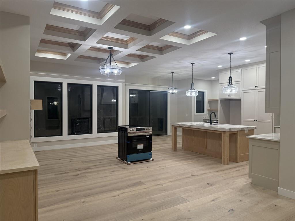 Elegant arches, crown coffered ceiling, built-ins, wine/coffee bar, Cambria kitchen counters, these are a few of the highlights on this New Construction Ranch in Andrew County. Finishing touches are happening now for this home to be ready for you this Spring.