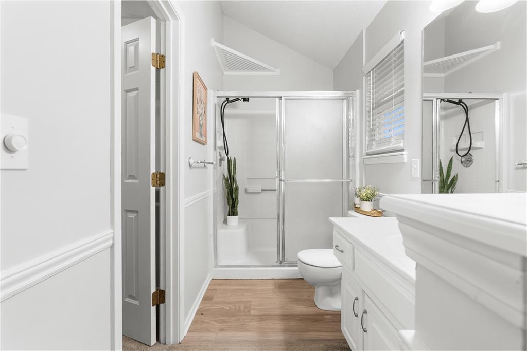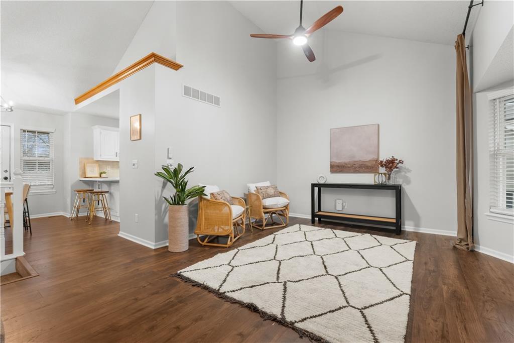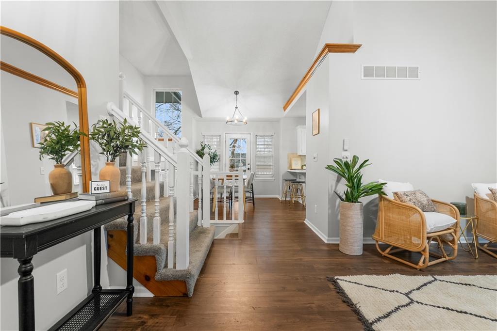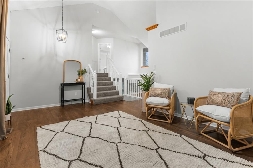Positioned in a quiet neighborhood, this home showcases a multitude of attractive features. Recent upgrades include new LVP flooring throughout the main level and living areas, new carpeting, all-new fixtures, and a fresh coat of paint. The main floor offers a formal living room and a kitchen/dining combination that overlooks the main living area. Upstairs, the home is complete with a primary suite, laundry room, and two additional bedrooms. The primary suite features vaulted ceilings, a spacious walk-in closet, a large vanity, and a private shower. The living space is complete with a gas starter fireplace and a half bath. The basement offers a fourth nonconforming room for additional bedroom space or office use. A newer deck, located off the kitchen, leads to the private backyard, which includes a small gardening greenhouse. This move-in-ready home provides ample space for entertaining and is ready for its new owner.