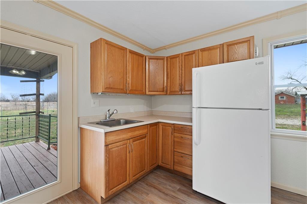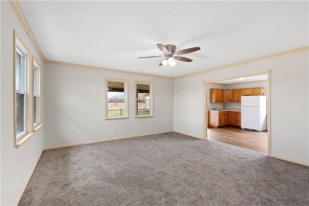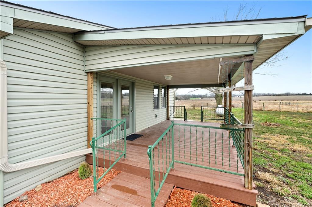 Beautifully remodeled country home on 15± acres offering the perfect blend of modern updates and rural living. This 3 bedroom, 2 bath home features numerous upgrades including new flooring, fresh paint, new roof, vinyl siding, and stainless appliances. The kitchen stands out with butcher block countertops and a stylish tile backsplash. The home offers both a formal living room and a spacious family room, providing flexible living and entertaining space. Refurbished wood floors add character, while the large primary suite with private on-suite bath offers comfort and privacy. Custom tile work in the laundry area adds another nice touch. Outdoor amenities make this property especially appealing with a covered porch, deck, and approximately 15.5 acres of cattle-tight fenced pasture, ideal for livestock, hobby farming, or simply enjoying the space. A 30x40 shop with tall ceilings and matching vinyl siding provides excellent space for projects, equipment, or storage. Additional features include a carport with storage closet, along with a chicken shed and traditional root cellar that offer great potential for restoration and use. If you're looking for updated country living with acreage, shop space, and room to grow, this property is definitely worth a look
