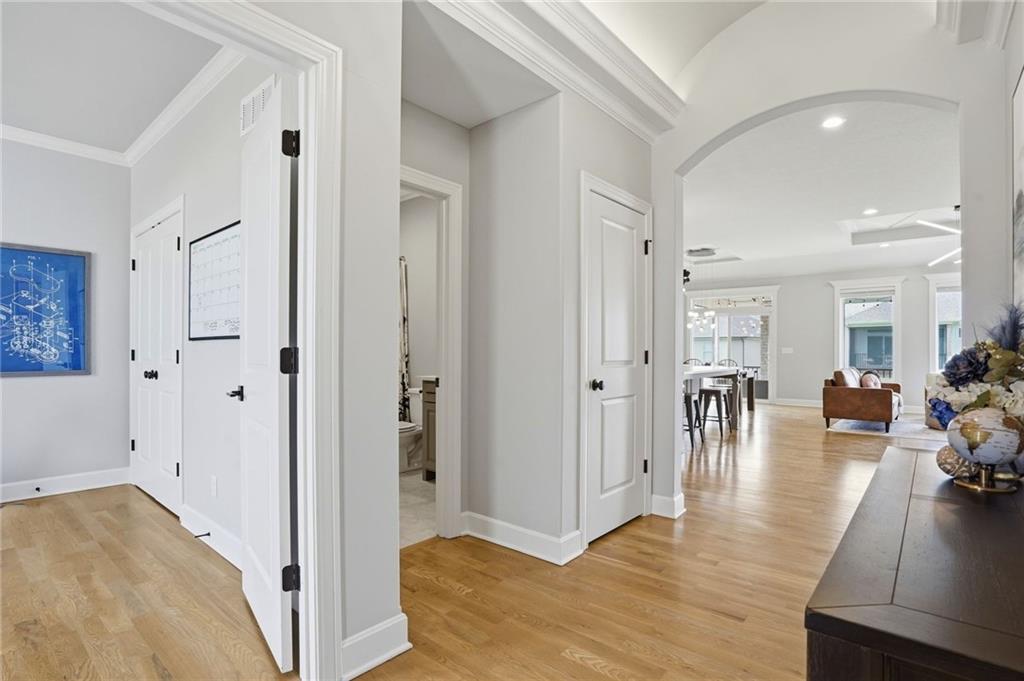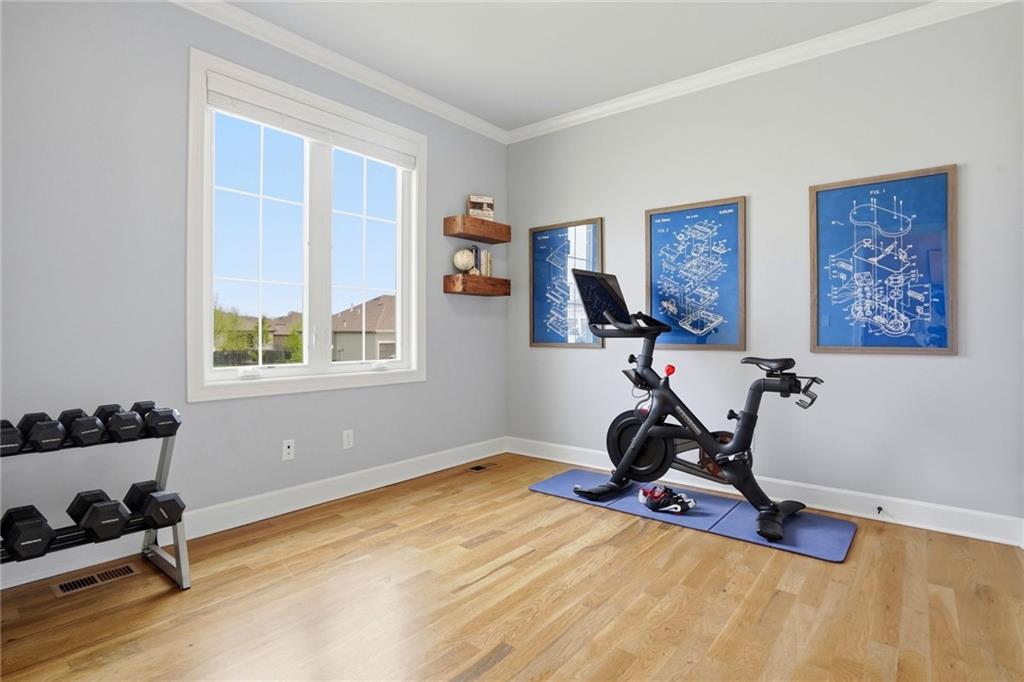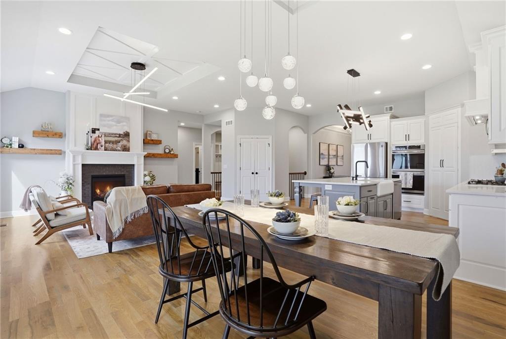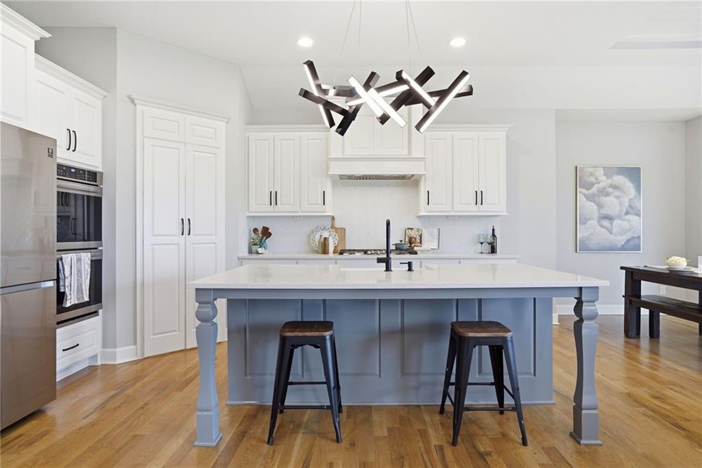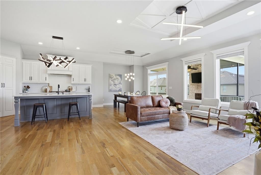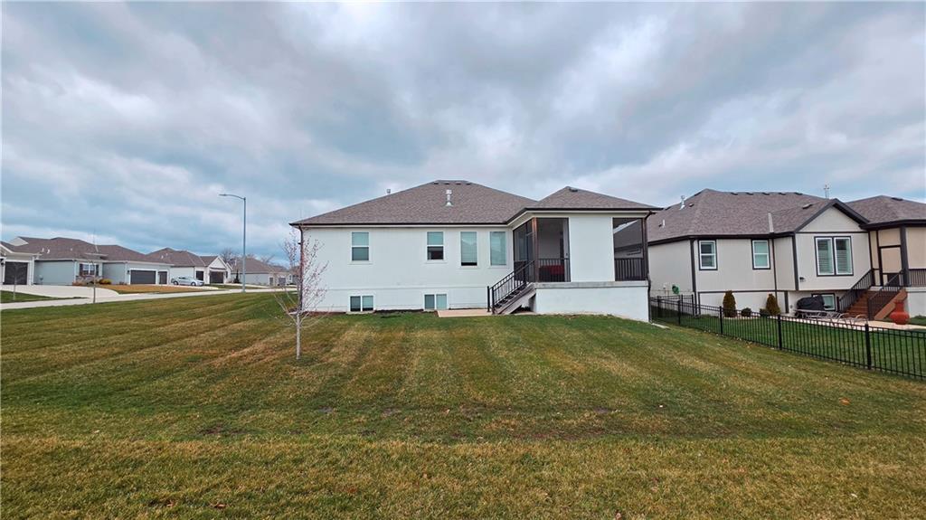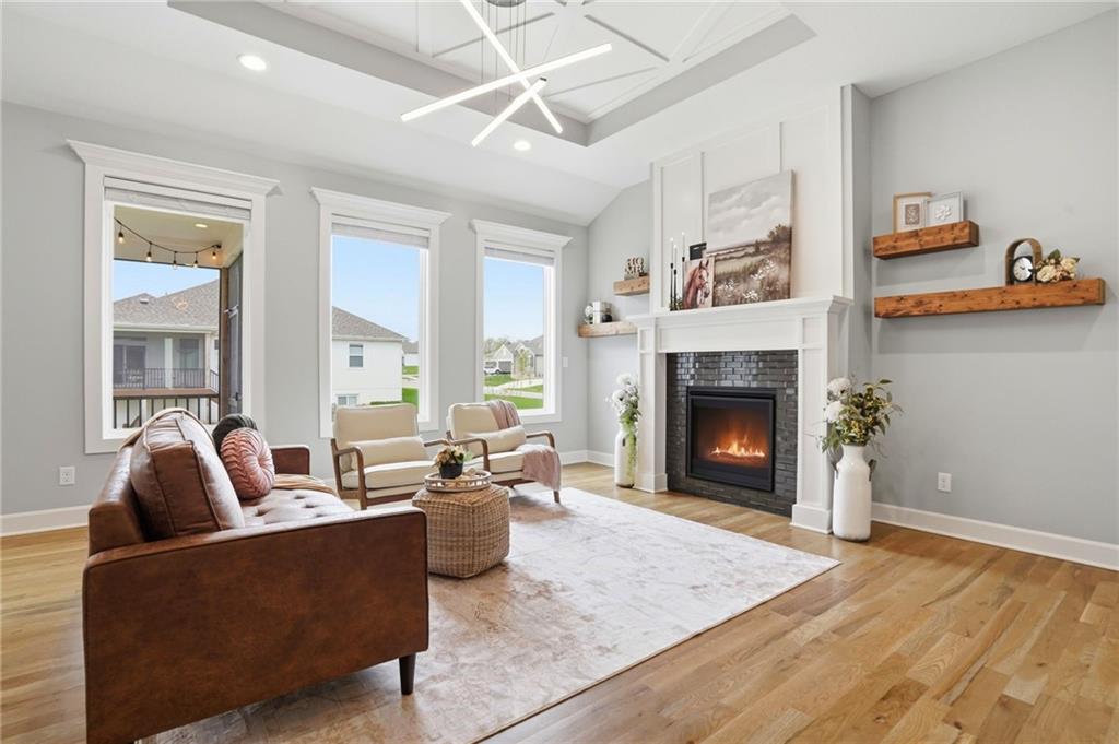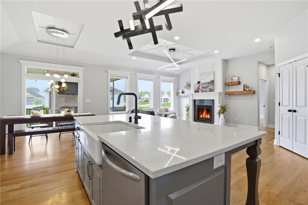 Welcome to your next neighborhood! Brookwood Farms is a vibrant, warm, welcoming, and social community with a pool, playground, fishing pond, and walking trails. Welcome to your next home! A rare opportunity to own a home featuring a 4 car garage — perfect for the car collector, hobbyist, boat owner (Hillsdale Lake is just 16 minutes!), or anyone needing expansive garage space. Whether you’re storing classic cars, creating a workshop, or keeping recreational vehicles and equipment protected, this home's garage offers incredible flexibility and room to spare. Inside this reverse 1.5 story home, find a spacious open floor plan designed for comfortable living and entertaining along with 4 bedrooms and 3 full bathrooms; providing plenty of room for you, your family and/or guests. Every detail considered! This home stands out from others with it's first impression curb appeal of the white & black modern farm-house style, to 4 frosted glass panel garage doors, to interior upgraded features that you will love - dramatic barrel-vault entry hall, arched openings, stainless steel double ovens and gas range, farmhouse style sink in large kitchen island, granite counter tops, shiplap feature wall framing the living room fireplace, boxed ceiling in primary bedroom, free-standing soaker tub in ensuite, walk-in shower, modern light fixtures, and soft backlighting throughout. Step outside to take-in sunrise over the neighborhood pond or the sunset as the day winds down, all from the screened-in covered deck with stone fireplace which creates a cozy outdoor living space you can use year-round. A rare combination of functional living space and an exceptional garage/workshop setup that’s increasingly hard to find. This home truly has it all in the fastest growing residential community of Spring Hill, Kansas!