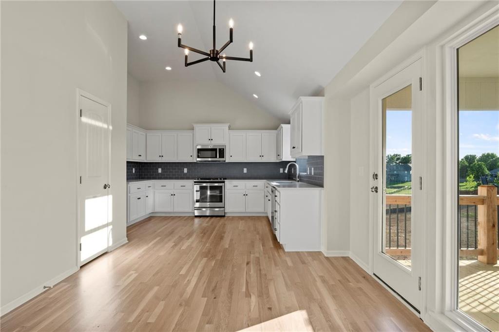 The "PAYTON" by Robertson Construction! A popular floor plan with 4 bedrooms, 3 full baths, 3 car garage and plenty of space for everyone! The Main Level features an oversized Kitchen with lots of counter space and storage along with Custom built Cabinets, Solid Surface Countertop, Real Hardwood Floor, Pantry and Floor to Ceiling Windows accenting the gas Fireplace. A Private Master Bedroom has its own bath with a separate tub and shower along with a Walk-in closet. Bedrooms 2 and 3 are also on this level. Additional Finished square feet is found in the Lower Level offering a Rec Room, 4th Bedroom and 3rd Full Bath. Located in the highly-rated NKC/Staley High School District. Great location close to local amenities, outdoor recreation and easy hwy. access! APPROXIMATELY 90-120 DAYS TO COMPLETION. Photos and matterport are of a previously built home.
