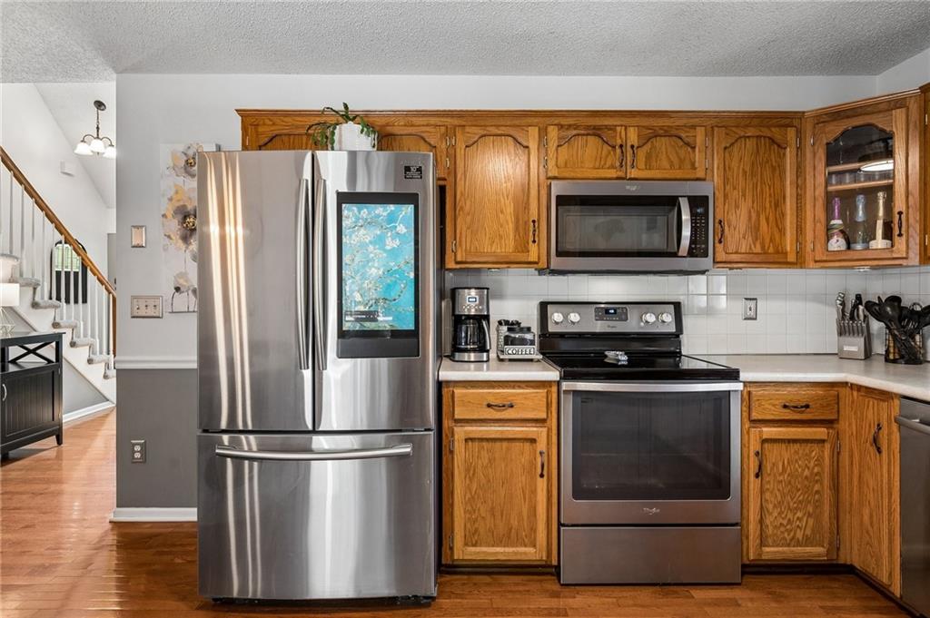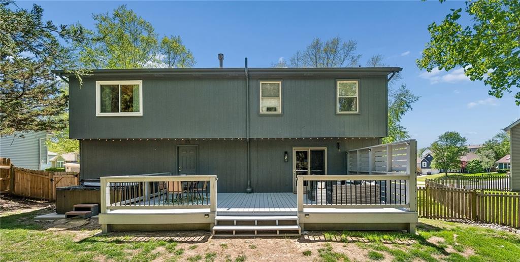 The most charming curb appeal and meticulously maintained 3-bedroom home with 2 full and 2 half baths in the highly coveted Park Hill School District! The light-filled living room offers skylights and a cozy fireplace. Eat-in kitchen features beautiful wood floors, dedicated pantry space, and direct access to backyard. The large deck overlooks fenced backyard with expanded area for seating, dining & entertaining plus your own hot tub that stays! Privacy screen and ambient lighting line the back perimeter to create a warm, cozy atmosphere. Retreat to the primary suite which features cove ceiling and a private ensuite bath w/double vanity and walk-in closet. Two additional bedrooms and full bath on second floor. The finished lower level provides flexibility with a comfortable family room and a non-conforming 4th bedroom or office nook along with additional half bath. Generous unfinished space is perfect for storage. Permanent Govee Lighting on exterior front of home with endless options to celebrate every holiday! Water purifier/softner, Samsung "family hub" wifi kitchen fridge manage your family's calendars, stream music, display artwork also stays! Enjoy everything this home has to offer...A fabulous property in prime location!