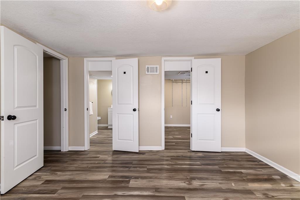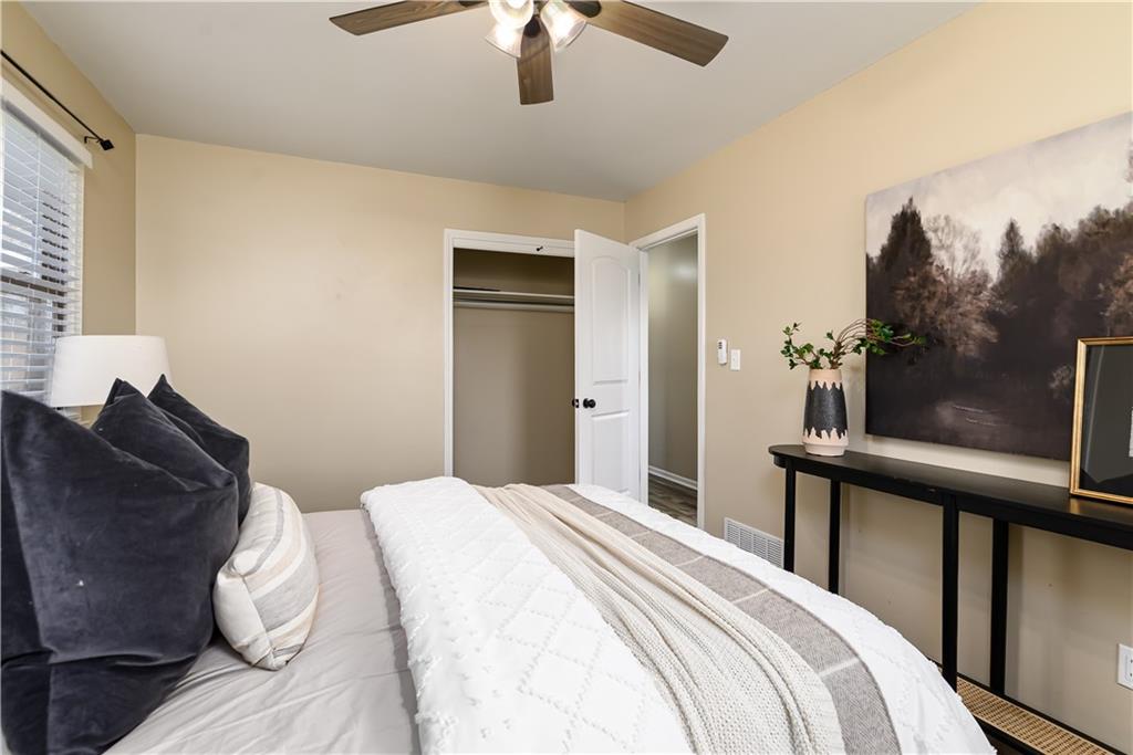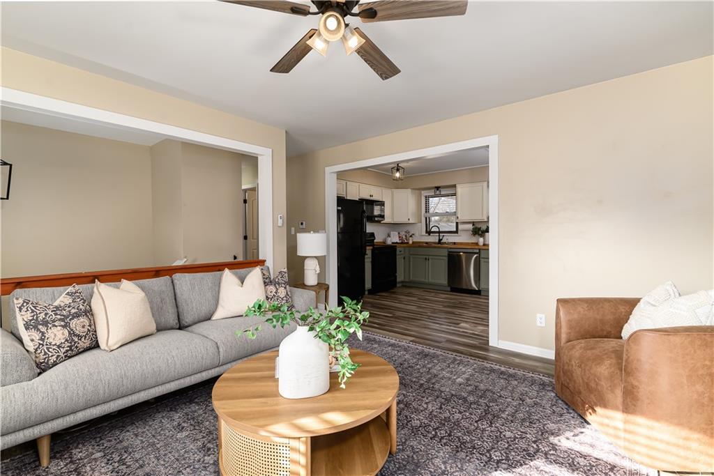 Beautifully updated home located on a quiet dead-end street just minutes from Fort Leavenworth! The upper level features a spacious living room with electric fireplace and built-in shelving, a kitchen with painted cabinets and butcher block countertops, eat-in dining area, three bedrooms, and a full bath. The lower level offers a primary suite with private full bath, walk-in closet, and newer windows. Step outside to enjoy the double-tiered deck, with one level covered, overlooking a privacy-fenced backyard—perfect for relaxing or entertaining. Additional features include a two-car garage with smart openers, extra parking pad, newer flooring throughout, updated plumbing and light fixtures, remote-controlled ceiling fans, faux wood blinds, whole house humidifier, newer concrete front steps with handrail! This Leavenworth CHARMER is move-in ready!