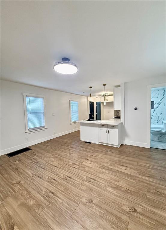 Unfurnished living room with plenty of natural light and light wood-style floors