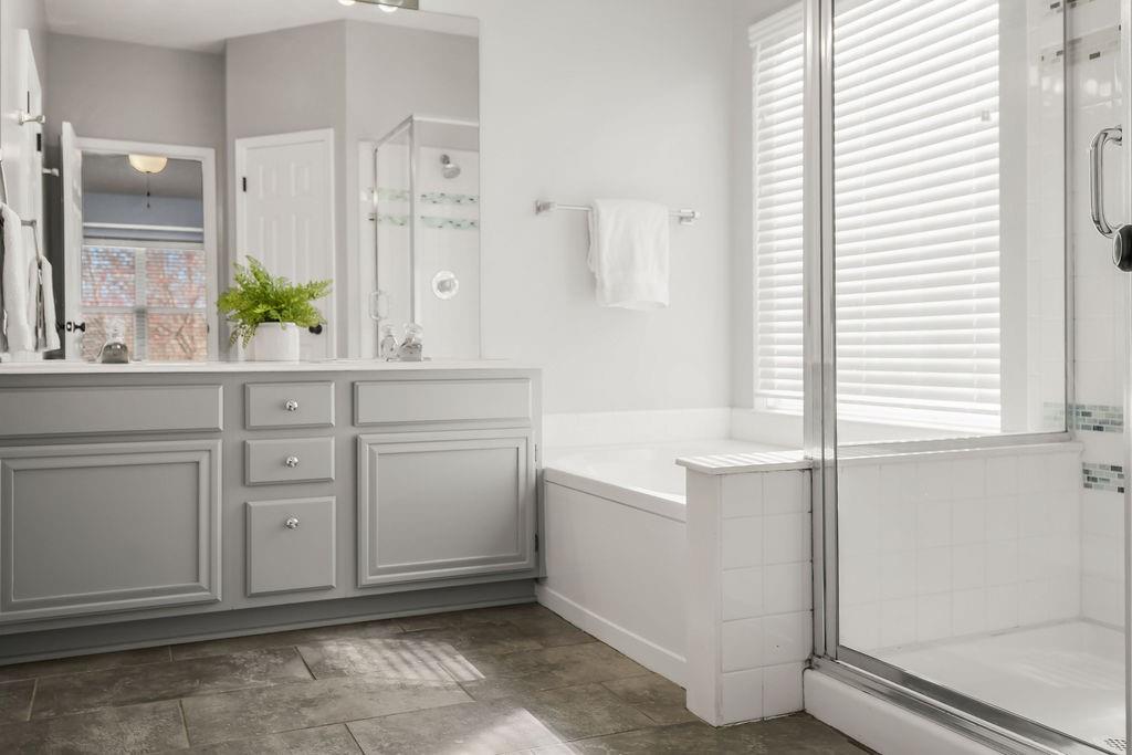Move-in ready with space to live, entertain, and relax! The main level welcomes you with a formal living room and beautiful luxury vinyl plank flooring flowing throughout the main living areas. The kitchen is a standout with its vaulted ceiling, TONS of cabinets, and center island with quartz counter—perfect for everything from quick breakfasts to hosting friends. Downstairs, the cozy family room features a zero-emission gas log fireplace and convenient half bath, making it an ideal hangout space for movie nights or game days. The spacious primary suite offers a relaxing retreat with a walk-in shower, walk-in closet, and soaker tub. Two additional bedrooms include large closets and share a well-appointed hall bath with tile flooring and a shower-over-tub. Need more space? The finished basement includes a rec room with a walkout to the backyard—perfect for a 4th bedroom, office, or rec room. Step outside to enjoy the large deck and backyard, ideal for entertaining or relaxing on warm evenings. Nestled on a quiet cul-de-sac! The home also features durable Hardi-plank siding, and residents get to enjoy the neighborhood swimming pool—just in time for summer.