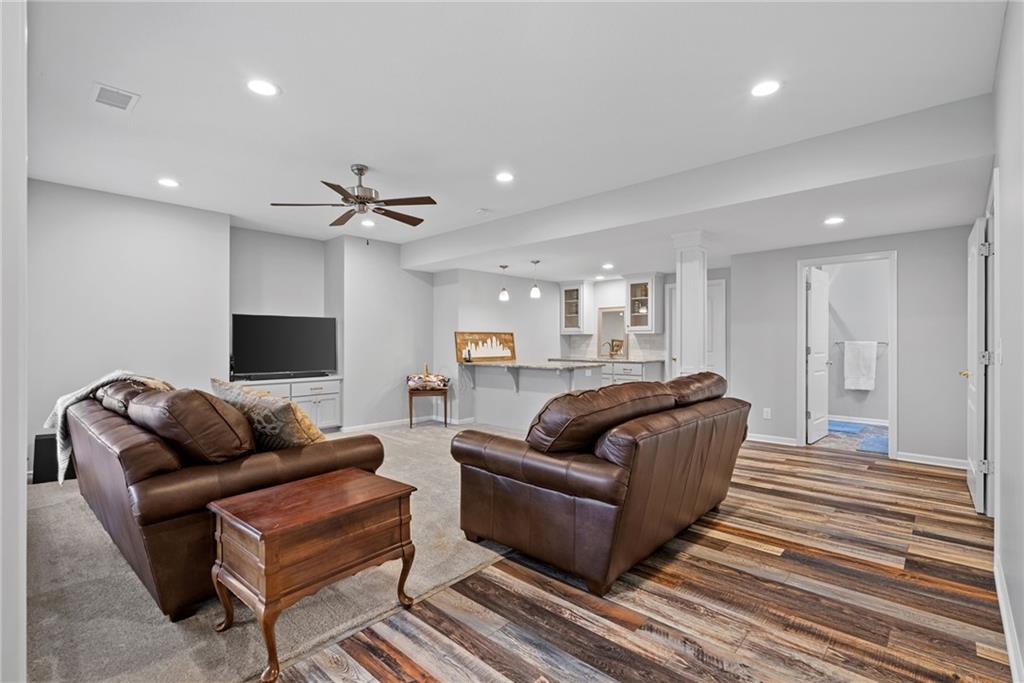 Nestled at the end of a quiet cul-de-sac in the highly sought-after golf community of Falcon Ridge, this impressive two-story home offers space, privacy, and beautiful natural surroundings. Featuring 4 bedrooms, 4.5 bathrooms, and a 3-car garage across approximately 4,500 square feet, the home backs to a serene greenspace with a picturesque dry rock creek. Walls of windows line the back of the home, filling the living areas with natural light and showcasing peaceful, tree-filled views across an expansive lawn. The main level offers both a deck and a screened-in porch—perfect for enjoying the outdoors in comfort. The spacious layout includes an enormous primary suite with an equally expansive walk-in closet, along with a nicely updated primary bath. Hardwood floors have been added to the dining room and study, and the interior has been refreshed with newer paint throughout in recent years. The finished walk-out basement (2016) provides additional living and entertaining space, complete with a built-in bar and access to a patio—ideal for gatherings both inside and out. Additional updates include a lifetime hail-resistant roof (2018) and a completely overhauled irrigation system (2025), offering added value and peace of mind. Located in one of the area’s most desirable communities, this home combines generous living spaces, thoughtful updates, and a tranquil setting just minutes from everything Falcon Ridge has to offer.