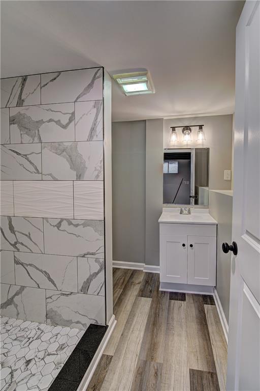Beautifully updated interior with refinished hardwood floors, fresh paint, updated hardware, modern light fixtures, and renovated kitchen and baths. The kitchen features custom shaker cabinets and stainless steel appliances. Spacious primary suite with double vanity and a beautifully tiled shower. Finished walkout basement offers additional living space with luxury vinyl plank flooring, recessed lighting, and a full bath. Exterior features new LP lap siding, vinyl windows, and insulated garage doors.