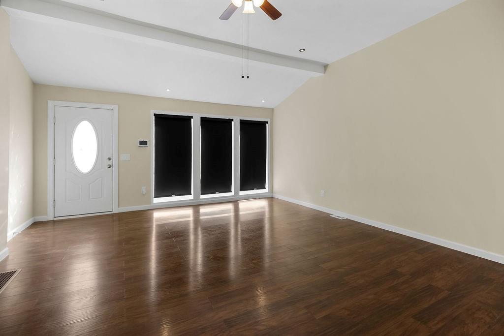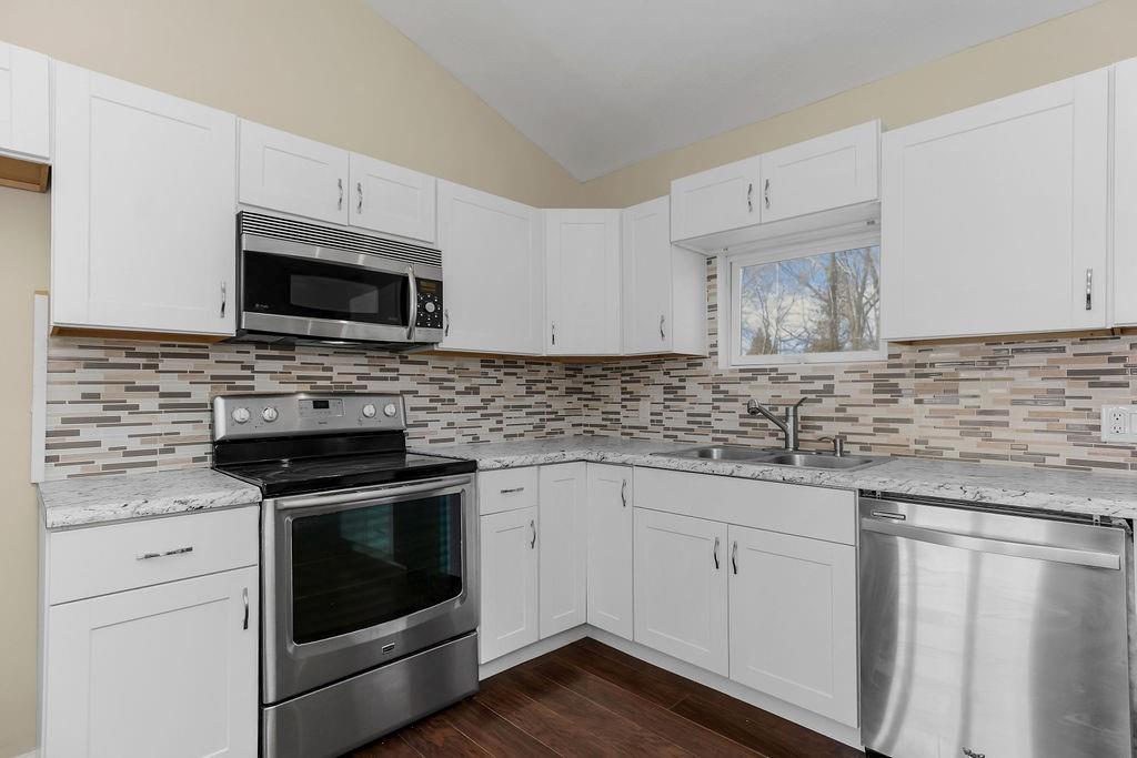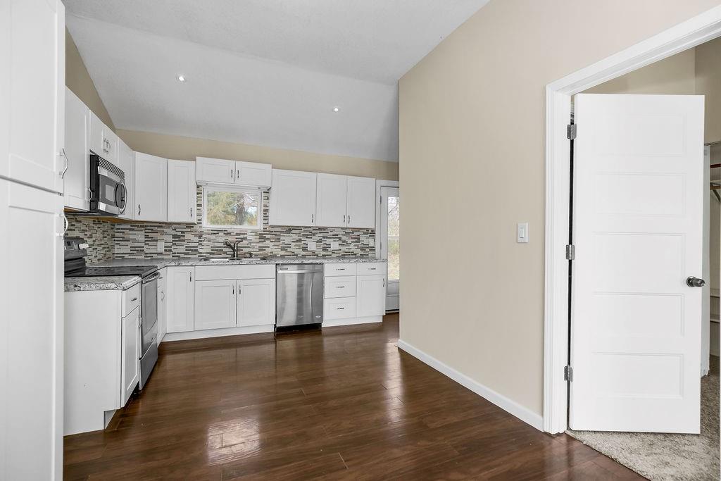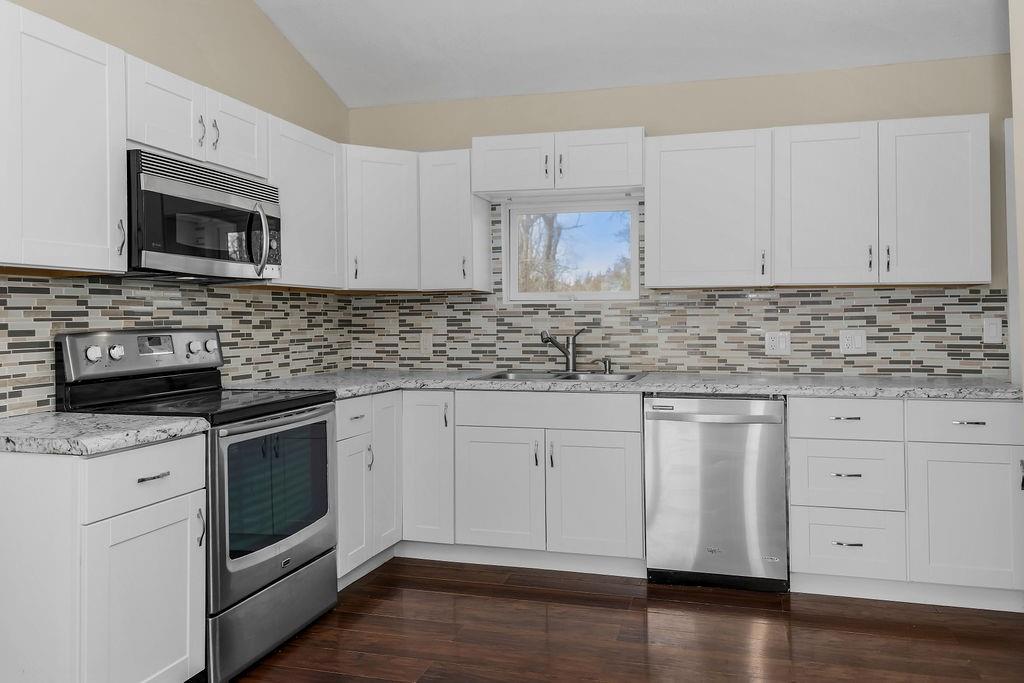 Welcome home to this bright and beautifully refreshed split-level offering style, space, and natural light throughout. The updated kitchen features crisp white cabinetry, stainless steel appliances, modern tile backsplash, and generous counter space, all opening seamlessly to the main living area for easy everyday living and entertaining. The living room showcases soaring ceilings and a wall of windows that fills the space with natural light, creating an open and airy feel rarely found at this price point. Recent improvements throughout the home include new flooring, fresh interior paint, repaired wall finishes, updated kitchen lighting, and new carpet in the primary bedroom, giving the home a clean and move-in ready feel. The primary bathroom has been refreshed with regrouted tile, and additional behind-the-scenes updates include installation of a proper refrigerator water line with a separate shut-off valve. Outside, the spacious yard and deck provide the perfect setting for relaxing evenings or entertaining. With a one-car garage, functional layout, and convenient access to nearby shopping, dining, and highways, this home offers both comfort and practicality. Come see the charm and possibilities for yourself!