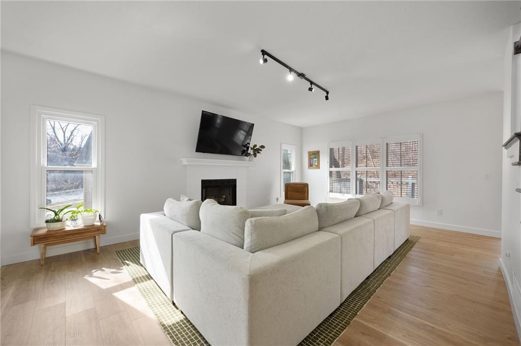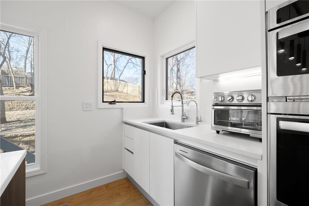 Welcome to this stunning 4-bedroom, 2.5-bath home in the Coventry Homes community. Every detail has been elevated for modern living, from the new LVP flooring and fresh interior paint to the beautifully remodeled kitchen featuring updated cabinetry, sleek countertops, and stylish fixtures. The layout is ideal for both day-to-day living and entertaining. Spacious bedrooms, refreshed bathrooms, and thoughtful upgrades throughout make this home completely move-in ready. The finished basement provides flexible space for a rec room, home office, or gym, plus an excellent storage room. Outside, enjoy a private backyard with a cozy sitting area, perfect for relaxing or entertaining guests and access to the Strathbury Park trail right across the street in the front of the house. Ideally located near downtown Kansas City, KCI Airport, Parkville and all major conveniences, this home truly checks every box! A must-see!