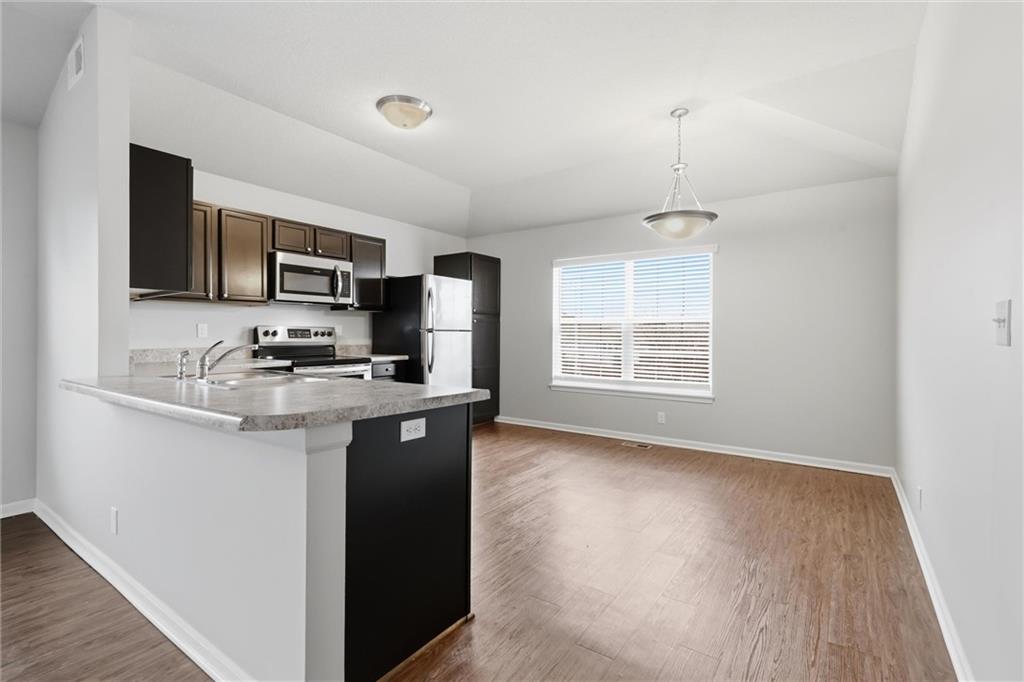 This single-family home is located in the St. John’s Community of Gardner, Kansas. It features three bedrooms and two bathrooms with a functional layout and open living area. The home appears to be in very good condition overall, with fresh interior paint and well-maintained finishes throughout. The exterior also presents well with no visible signs of deferred maintenance. The neighborhood is well-kept and conveniently located near Gardner Junction Park, Veterans Memorial Park, and Big Bull Creek Disc Golf Course.