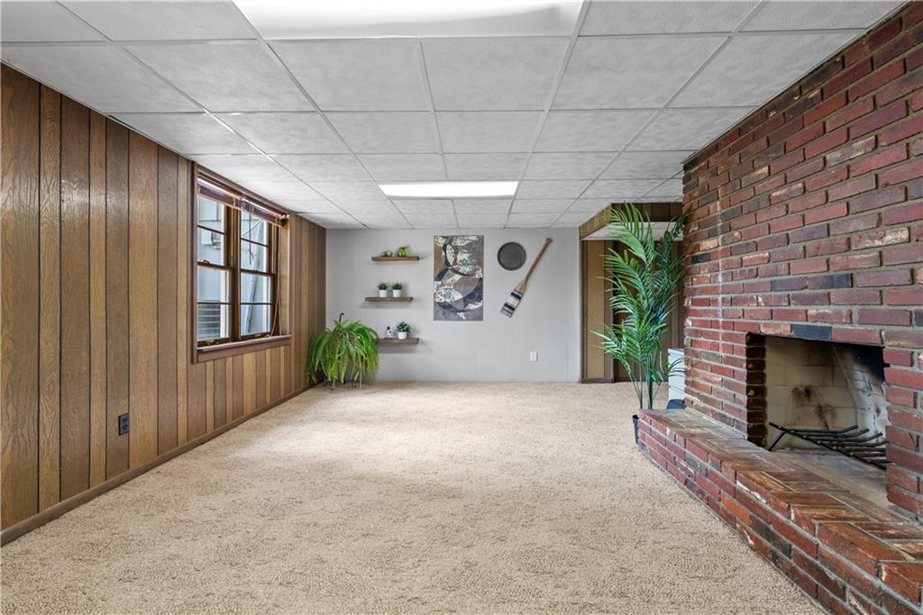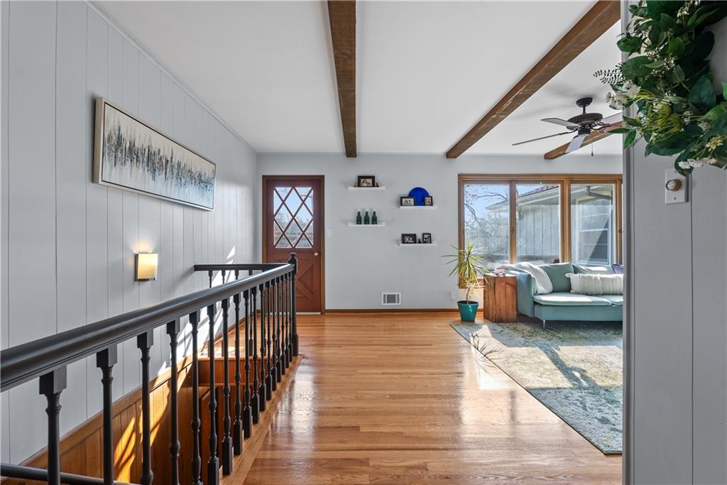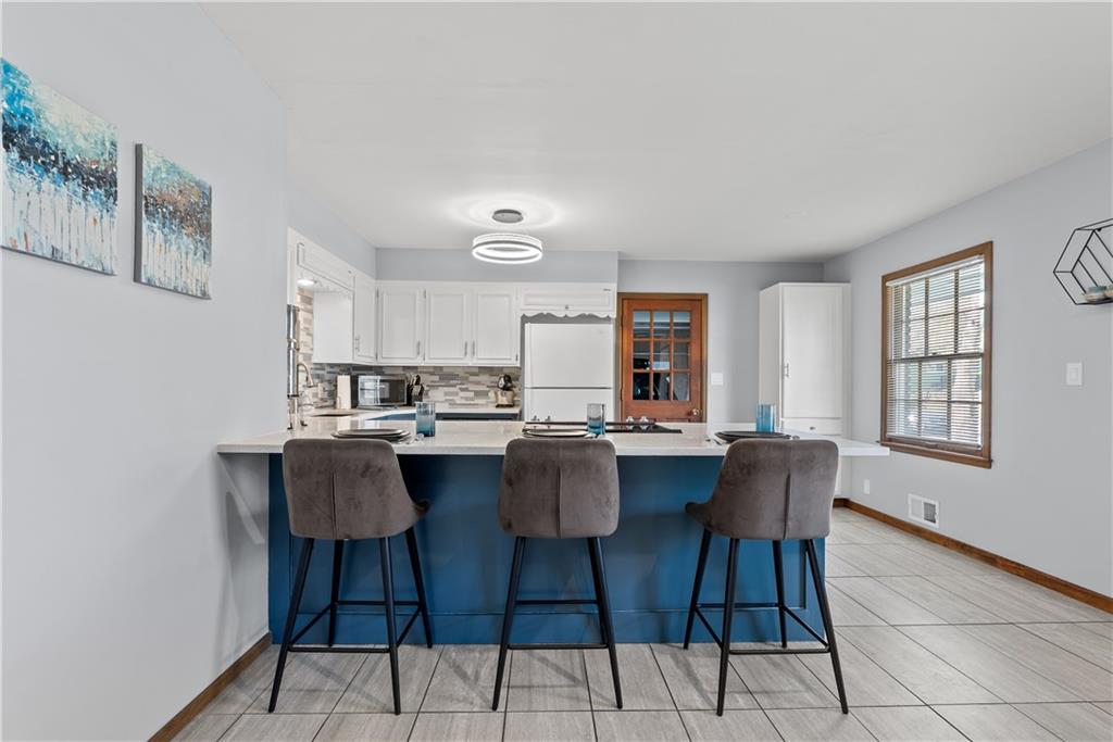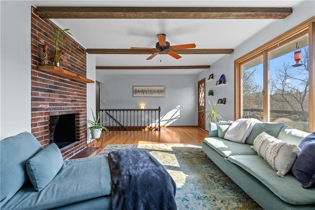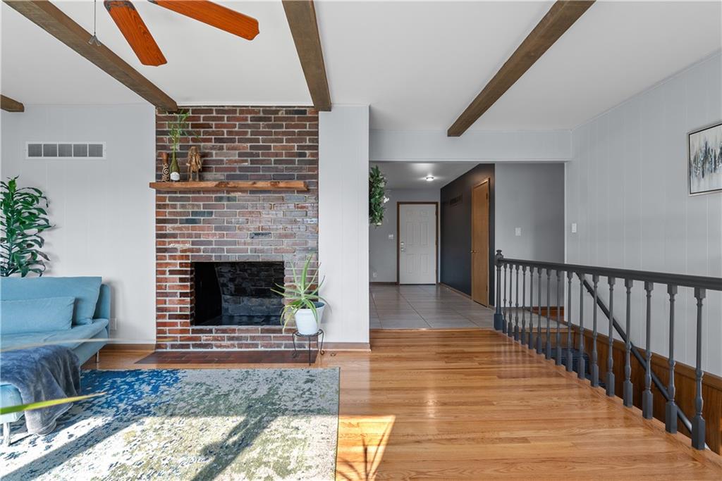 Welcome to this updated home with walkout finished lower level that backs to green space and is centrally located with nearby highway access. This 3 bedroom/2.5 bath home has been modernized with neutral paint in and out, new tile flooring, refinished hardwoods, white updated kitchen with quartz counters and an on-trend full bathroom with luxe shower. Step into the open concept kitchen/dining room with lots of room for cooking with the oversized island. Kitchen includes quartz counters, trendy backsplash, and new pantry for your cooking supplies. Family room lets in sunlight with large windows and views to the woods out back. A brick decorative fireplace is the focus along with newly finished hardwood floors and ceiling wood beams. Three bedrooms on the main level also have hardwood floors and windows for natural light. The full bathroom is a showstopper with a black tiled luxurious-looking shower and floor-to-ceiling glass door. The primary bedroom includes its own full bathroom with shower. Downstairs is yours to imagine! So much space and walks out to a covered patio. A second family room includes another brick fireplace and floor-to-ceiling windows. Around the corner is space for an office, exercise, or playroom. The rec room is huge with room for entertainment or media. This lower level has two options for your washer and dryer, in the dedicated laundry room or the current placement in the game room. There is also an updated half bath. You will be pleasantly surprised at the oversized garage. It appears to be a standard 2-car garage but is a tandem space that can fit 4+ cars! Ideal for boats, ATVs, workshop, or car collection, it's well-lit with windows and a ceiling fan. There's also a bonus room below great for storage. PLUS a brand new double driveway and sidewalk! Out back, the property backs to woods and wildlife. Located just off 350 Highway, this move-in ready home with oversized garage is waiting for you! See it for yourself!