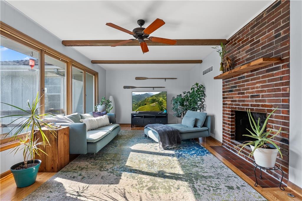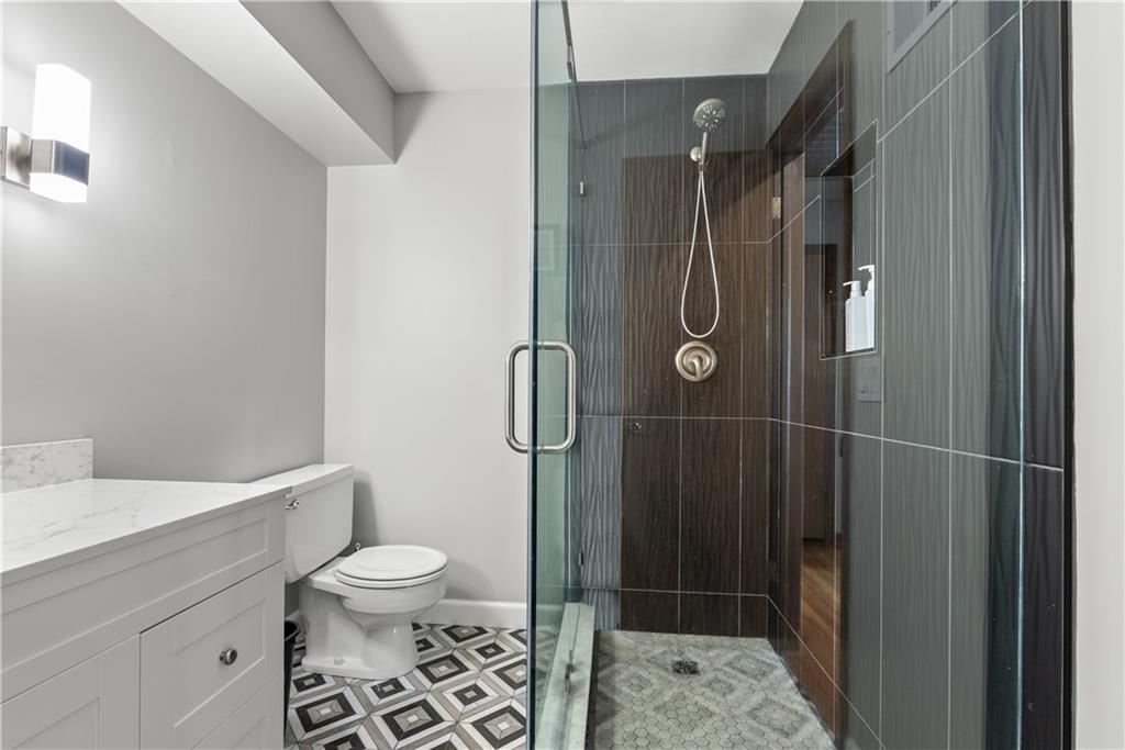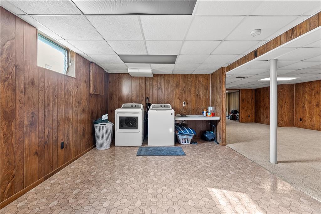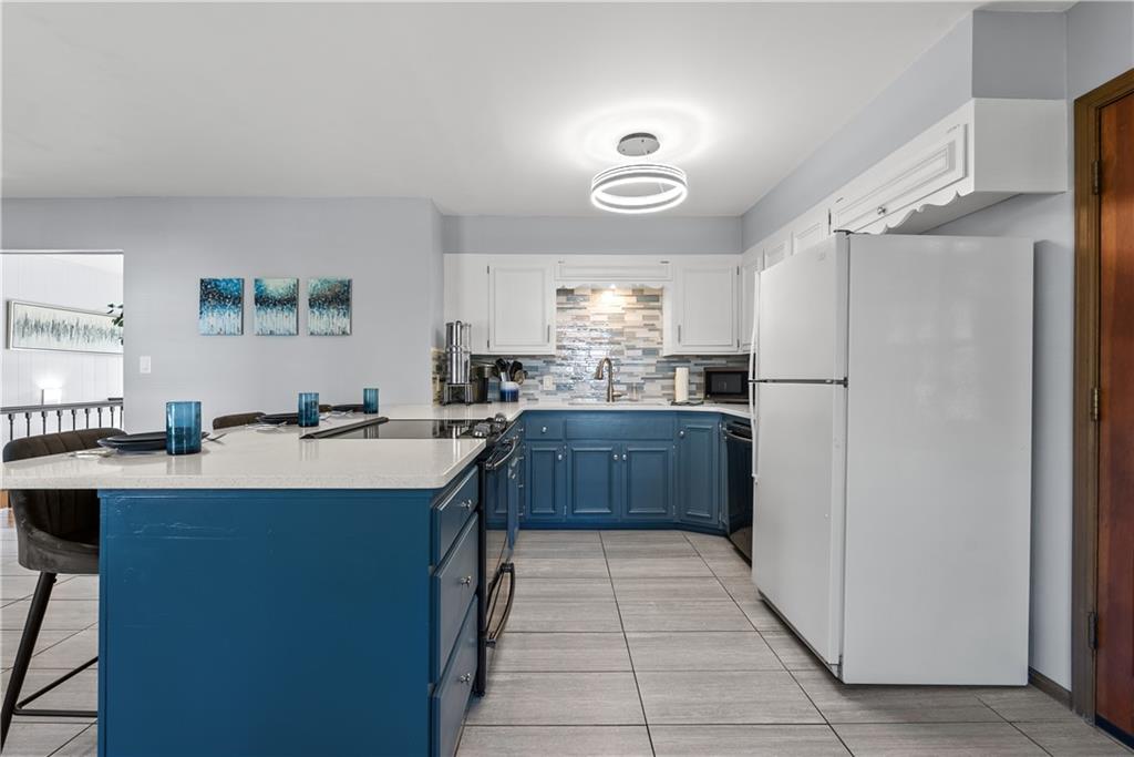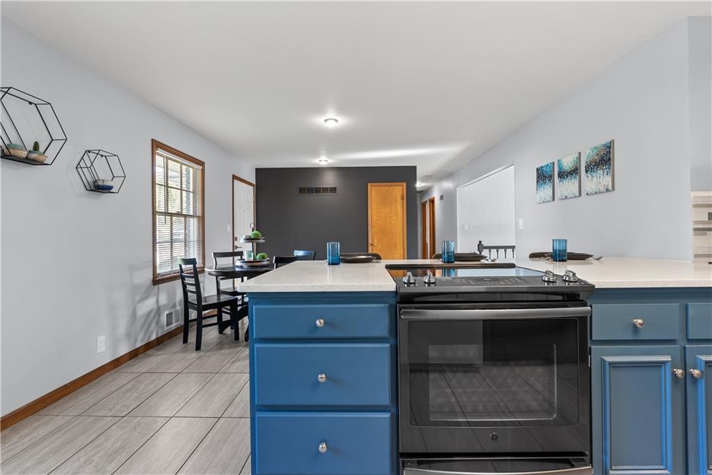 Welcome to this updated home with walkout finished lower level that backs to green space and is centrally located with nearby highway access. This 3 bedroom/2.5 bath home has been modernized with neutral paint in and out, new tile flooring, refinished hardwoods, white updated kitchen with quartz counters and an on-trend full bathroom with luxe shower. Step into the open concept kitchen/dining room with lots of room for cooking with the oversized island. Kitchen includes quartz counters, trendy backsplash, and new pantry for your cooking supplies. Family room lets in sunlight with large windows and views to the woods out back. A brick decorative fireplace is the focus along with newly finished hardwood floors and ceiling wood beams. Three bedrooms on the main level also have hardwood floors and windows for natural light. The full bathroom is a showstopper with a black tiled luxurious-looking shower and floor-to-ceiling glass door. The primary bedroom includes its own full bathroom with shower. Downstairs is yours to imagine! So much space and walks out to a covered patio. A second family room includes another brick fireplace and floor-to-ceiling windows. Around the corner is space for an office, exercise, or playroom. The rec room is huge with room for entertainment or media. This lower level has two options for your washer and dryer, in the dedicated laundry room or the current placement in the game room. There is also an updated half bath. You will be pleasantly surprised at the oversized garage. It appears to be a standard 2-car garage but is a tandem space that can fit 4+ cars! Ideal for boats, ATVs, workshop, or car collection, it's well-lit with windows and a ceiling fan. There's also a bonus room below great for storage. PLUS a brand new double driveway and sidewalk! Out back, the property backs to woods and wildlife. Located just off 350 Highway, this move-in ready home with oversized garage is waiting for you! See it for yourself!