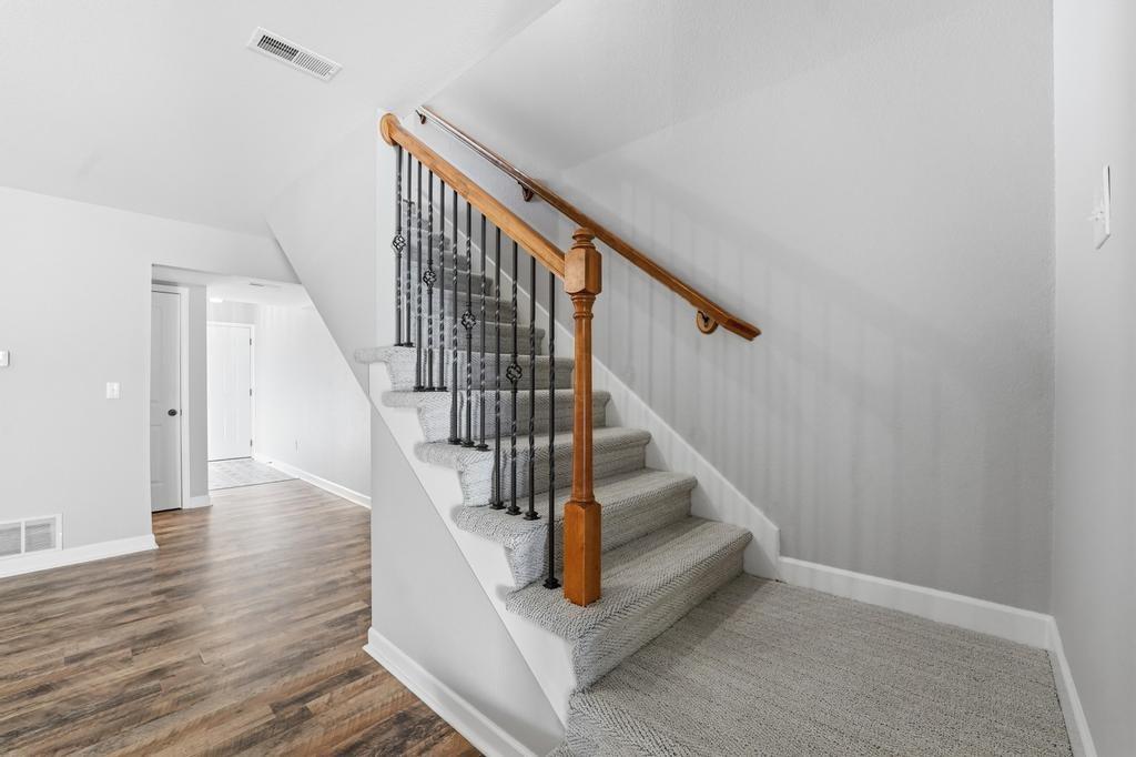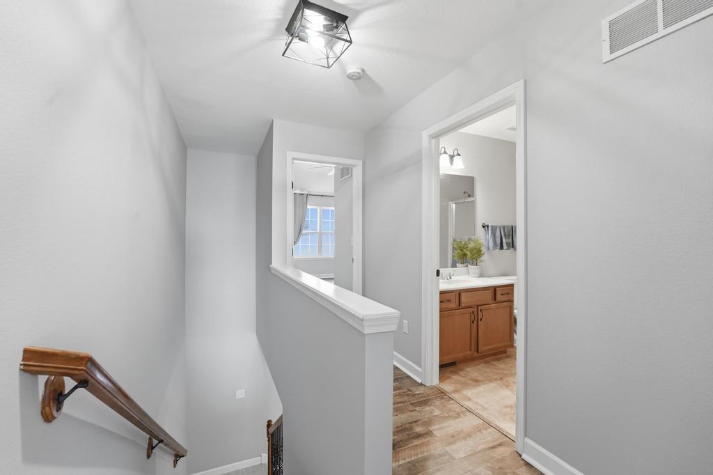 Welcome to this move in ready townhouse with 2 large bedrooms and 2.5 bathrooms! This home has been freshly professionally painted & new flooring has been installed. The location is near many walking trails, shopping, dining, schools and is a super short drive to the airport! The living space feels airy with the kitchen / dining and great room open to one another with the continuous LVP flooring and consistent paint scheme. The great room feels cozy during the winter with the gas fireplace! The main level has a storage closet as well as 1/2 bath for guests. Access to the backyard and a private patio are through the slider doors. The trees in the backyard provide the privacy you will love! You will want to start and end your days on the back patio, which could also be a great entertaining space. The primary bedroom upstairs has a walk-in closet, vaulted ceiling fan, accent wall and the ensuite bathroom is so convenient! Just a few steps from both upstairs bedrooms is the hall bath with a nice laundry closet. The washer and dryer are included! This townhome is just a short distance to the community pool, clubhouse, and outdoor play area. HOA also provides lawn care. This well-cared for townhouse is ready for new owners! Taxes are estimated as well as square footage.