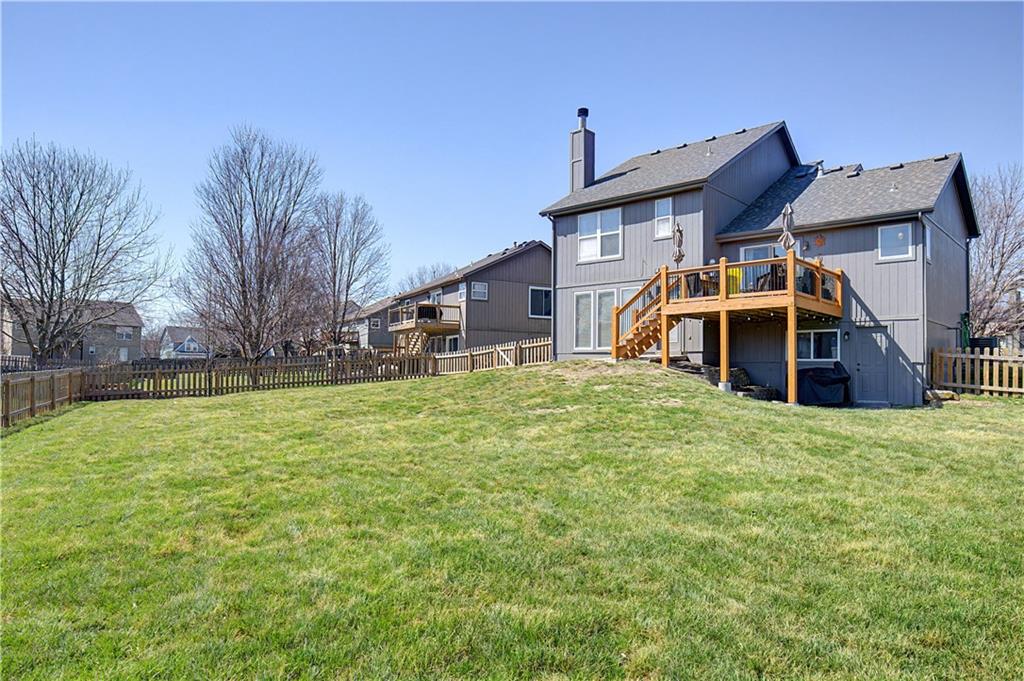 ABSOLUTELY THE BEST BACKYARD IN OLATHE! QUARTER ACRE, FENCED and NO-NEIGHBOR VIEW, backs to open field. THIS UPGRADED 3BR HOME has TONS OF NEW: NEW FENCE, NEW ROOF, NEW AIR CONDITIONER, YOUNG EXTERIOR PAINT & NEWLY RESTAINED & RESTORED DECK. LOTS TO OFFER with this CLEAN and TIDY, MOVE-IN-READY Home with Incredible PRIVACY and LARGE BACKYARD!! Lots of Stylish touches with Hard Surface, TILED BATHROOMS, TILED LAUDRY ROOM and Modern Colors to match. WALK-IN CLOSETS & TWO SEPARATE LIVING SPACES for ADDED VALUE. Hurry!! THIS IS PRICED TO GO QUICK!!