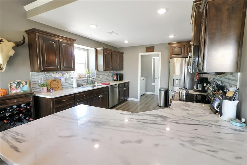 BUILT IN 2022 !!!!! NEW-ish raised ranch floorplan on a large corner lot in the perfectly located Hawthorne neighborhood of Warrensburg. Backing up to green space, this home is ideal for bird watching and peaceful mornings. The main level features three bedrooms - one of which has a very nice ensuite setup. The living room is adjacent to a smaller dining area as well as a very spacious kitchen (richly stained wood cabinets, gorgeous white marble countertops....) and an attached laundry & pantry area! The lower level has a full bathroom, bar, recreational area, walkout door to the backyard. The garage is large, huge yard, long driveway, green space behind the home.... this is a fantastic home and you will want to look at it before it's gone!--