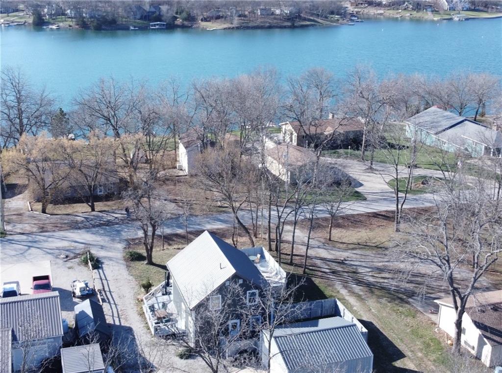 Enjoy lake views with this 1st tier property in Linn Valley Lakes. Plenty of outdoor living space with the enormous deck! A top to bottom rehab was completed in 2019 and the home still looks fresh and new. An oversized 24 x 20 garage with concrete floors and electricity is tucked behind the home! Open floorplan on the main floor has lots of sunlight and great views towards trees and the main lake. There is one bedroom and a bathroom on the main floor. Upstairs, the Primary bedroom is huge and has a private martini deck with views of the lake. A 3rd bedroom, 2nd full bath and a bonus loft area are also located on the 2nd floor. The fenced back yard provides a nice area for pets. This great property is located on a paved road and is connected to public sewer and water lines. The clubhouse, pool and sand beach are a 1/2 block away and the boat ramp for launching your boat or jet ski is just down the street.