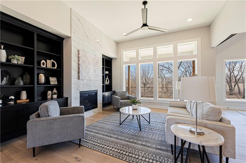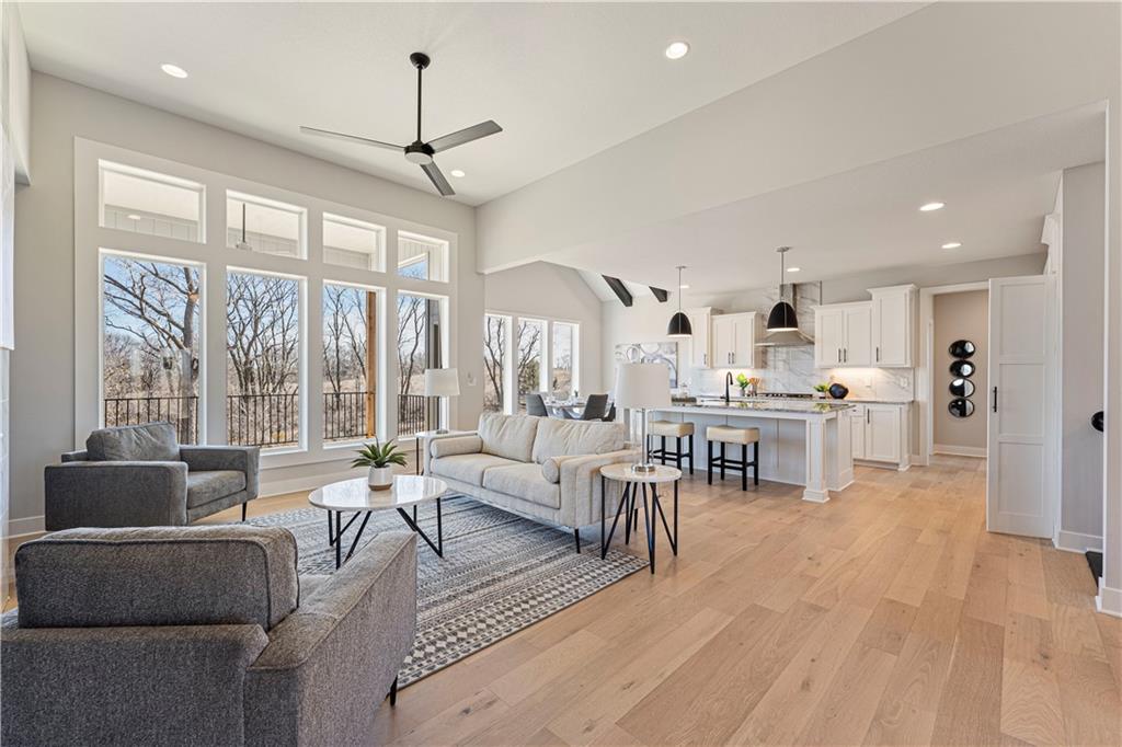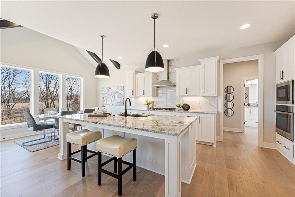 Welcome to the Timberland Reverse by New Mark Homes, a beautifully designed reverse 1.5-story offering approximately 2,736 square feet of finished living space in the highly desirable Cadence community! This thoughtfully crafted home highlights true main-level living with a light-filled, open layout designed for both everyday comfort and entertaining. The great room, kitchen, and breakfast area flow seamlessly together, creating an inviting central gathering space. The chef’s kitchen features a large island, gas cooktop, quartz surfaces, and abundant custom built cabinetry, while the great room showcases a stunning fireplace and elegant finishes. The main-level primary suite offers a peaceful retreat with a freestanding soaking tub, walk-in closet, and spa-inspired bath. The laundry room, secondary bedroom, full bath, and convenient mudroom with built-in boot bench complete the main level, making daily living effortless and functional. The finished walkout lower level expands the home with a spacious recreation room, custom bar area, two additional bedrooms, and a full bath—perfect for hosting guests or creating flexible living space! Enjoy outdoor living from the covered deck and walkout patio, ideal for relaxing evenings or entertaining! Located in the vibrant Cadence community, residents enjoy neighborhood walking trails, swimming pool, and green space, plus quick access to Platte Purchase Park! Situated within the Staley High School attendance area, this home offers an exceptional Northland lifestyle! Home is Under Construction at this time with an estimated completion date of Late July/Early August. Taxes & sqft estimated. Simulated photos of a previous model. Some selections & details may vary from this actual home. Home is pre-sheetrock stage as of 3/16/2026.