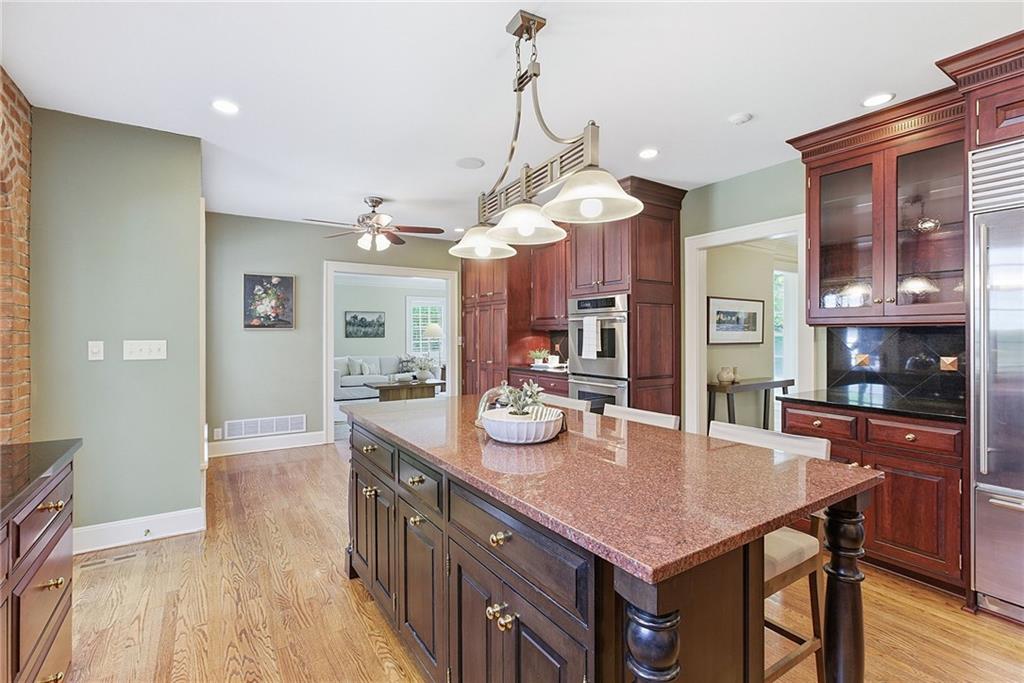 We all love a center hall floor plan! Over 4,000 SF with flexible living space for our everyday lives and entertaining is what you'll find in this 3-story home. The formal living and dining rooms give a traditional feel, while the extra rooms, library/sunroom/playroom make this house so versatile. Wainscoting is one of those details that quietly makes everything look more refined, and this home carries it in the entry hall, dining room, staircase and 2nd floor hallway. The eat-in kitchen is a true standout, showcasing a large island with breakfast bar, premium Thermador appliances, double oven, and an 8-burner gas cooktop with griddle. Thoughtful details include abundant cabinetry with roll-out shelving, a pantry, glass-front cabinets, and under-cabinet lighting. A convenient side entrance into the kitchen with charming brick steps makes grocery drop-off effortless. A big family room opening to the patio with French doors is a strong highlight—and features a built-in grill and firepit, which extends the living space outdoors. Great setup for hosting all things fun! Half bath with linen storage and a walk-in coat closet is conveniently located in the hallway off the family room. Large primary suite with walk-in closet, 2 single closets and a bonus room plus an updated bathroom with double vanity, whirlpool tub, separate shower and plantation shutters. 2 additional bedrooms on 2nd floor with an updated hall bath! 3rd floor features 4th bedroom or flex space with a full bathroom. The walk-in storage room with a double cedar closet is a great feature. Three zoned HVAC systems. Lots to love with the hardwoods, plantation shutters, updated bathrooms. 2-car attached garage. Newer windows in family room, sunroom, eat-in kitchen space, guest room, full bath and primary bedroom. High ceilings in basement and newer 2 car garage. Walking down Meyer Blvd. to the Brookside shops and eateries, being close to the trolley trail, Crestwood and Plaza is unbeatable!