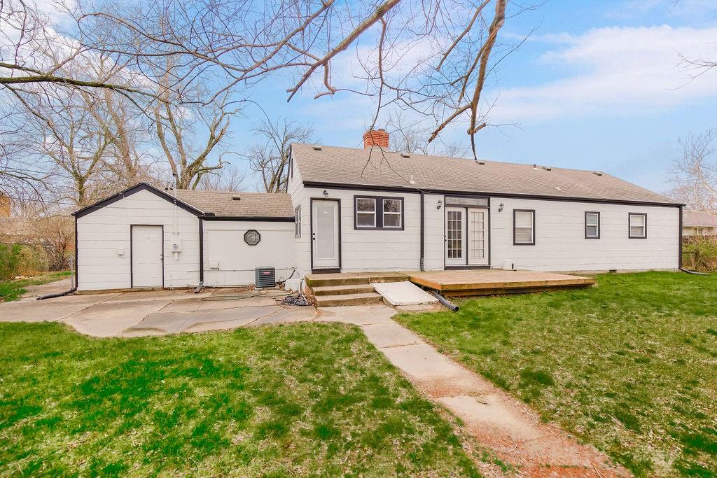 If you're looking for space to grow...this is THE ONE! Charming, updated RANCH on nearly a half acre lot! Set back off the street for plenty of parking and room to play. A perfect canvas for the gardening enthusiast! Fire pit area and shed in back. Great space for BBQs with patio area and ground level deck off the kitchen. 2 bonus rooms include laundry and additional office space in the attached breezeway! Gleaming wood floors throughout! Plenty of storage in the attached garage and easy pull-down attic access. Enjoy your own private oasis just minutes from 435 and State Line! So many possibilities for a yard this size!!!