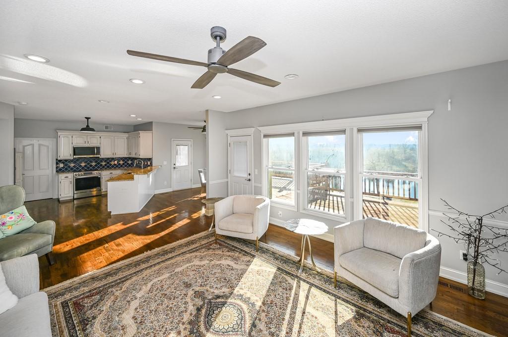 Living area featuring hardwood / wood-style floors, a ceiling fan, and recessed lighting