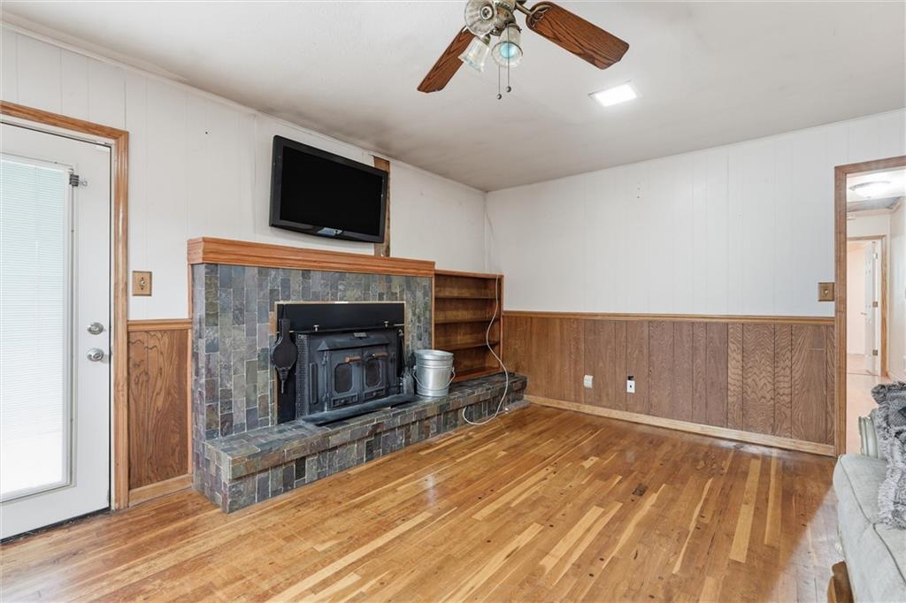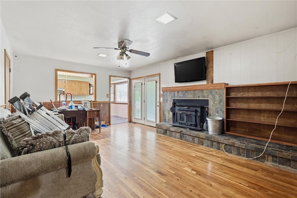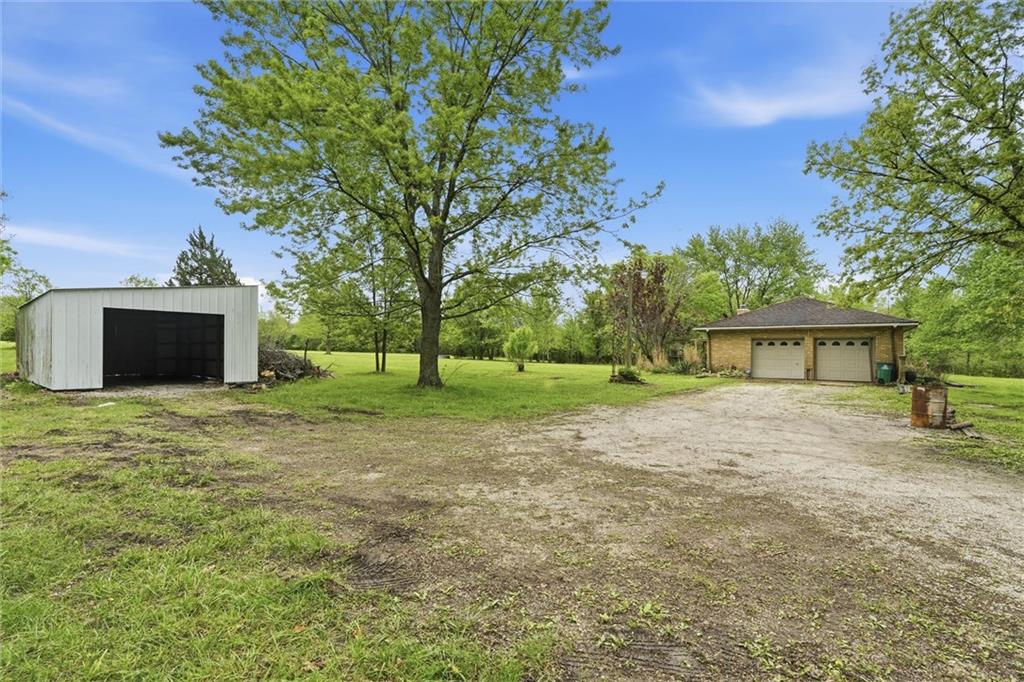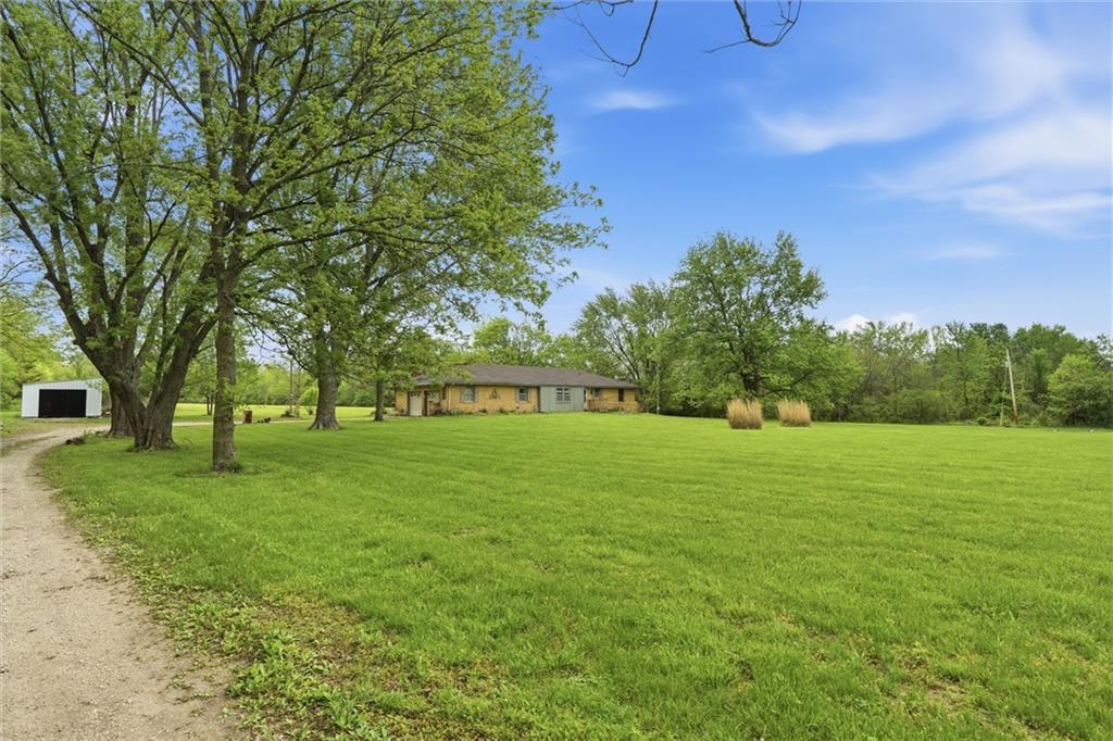 Country living at its best on acreage with room to spread out! This spacious ranch sits on a beautiful, private setting featuring a mix of open pasture and mature trees—perfect for those looking for space, privacy, or a hobby farm setup. A large outbuilding/shop provides excellent storage for equipment, toys, or livestock needs, along with an additional detached garage. Inside, you’ll find a functional layout with hardwood floors, a cozy wood-burning fireplace, and plenty of natural light. The kitchen offers ample cabinet space and overlooks the scenic backyard. The primary suite includes a large bathroom with double vanity and soaking tub. The full basement offers additional living space potential with a finished area and room to customize, plus plenty of storage. Step outside and enjoy wide-open views, established trees, and endless possibilities for outdoor living, gardening, or recreation. Conveniently located with easy access while still offering that peaceful, rural feel—this property is a rare opportunity to own usable acreage with multiple outbuildings and space to make it your own!