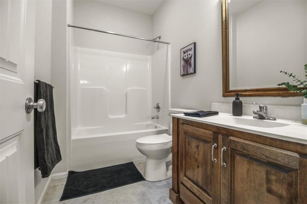 Welcome to your dream retreat in Blue Springs, where modern sophistication meets suburban tranquility. This stunning contemporary ranch immediately captivates with impeccable curb appeal, featuring a sleek exterior and an inviting front door. Step inside to an expansive open-concept great room, where soaring ceilings and a magnificent ten-blade farmhouse fan create an airy, upscale atmosphere. The living area, anchored by a cozy fireplace with a classic white mantel, flows seamlessly into a gourmet kitchen designed for the modern chef. You will love the rich custom cabinetry, gleaming granite countertops, and a sprawling center island—perfect for morning coffee or hosting vibrant gatherings. High-end stainless appliances and a spacious pantry ensure this kitchen is as functional as it is beautiful. The main-floor primary suite serves as a sanctuary, boasting a tray ceiling, plush carpeting, and an abundance of natural light. It leads into a spa-like ensuite featuring a dual-sink vanity and a massive walk-in closet. Practicality is a priority here, with a dedicated main-level laundry room conveniently located off the kitchen. For those who love the outdoors, the covered composite deck offers a peaceful vantage point overlooking a lush yard that adjoins serene greenspace, while the walk-out basement provides endless potential for a future recreation room or gym. Nestled in a quiet area within the highly-rated Blue Springs School District, this home offers more than just a place to live—it provides a lifestyle. Residents enjoy fantastic community amenities including a sparkling swimming pool, clubhouse, and stress-free living with provided lawn maintenance and snow removal. Just minutes from local parks and premier shopping, this move-in-ready gem is the perfect blend of luxury and convenience.