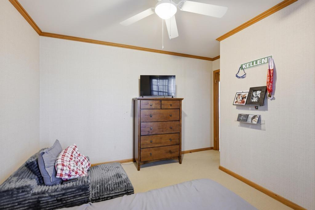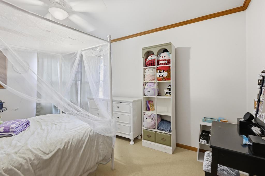 This 4-bedroom, 3-bathroom residence perfectly balances mid-century character with the square footage a modern family needs. This home offers room to grow in a peaceful neighborhood setting. The front of the home stands out with its unique midcentury modern style and two large bay windows that fill the living area with sun. The open-concept two-story open greatroom is anchored by a working floor-to-ceiling gas fireplace, creating a warm and inviting atmosphere the second you walk in. The kitchen serves as a social hub, finished with thick granite surfaces, copper hardware, and a large stainless farmhouse sink. High-quality stainless steel systems ensure the kitchen is ready for holiday meals. Organization is easy here; the laundry room is its own separate space filled with additional cabinetry and a convenient sink for cleanup. The private side of the home is just as impressive. The owner’s suite acts as a personal getaway, complete with dual vanities and dual closets featuring custom shelves. A special bonus room attached to the suite offers a flexible "flex space" for a private library or a spa-like relaxation area. Modern touches like integrated USB outlets and crown molding throughout the upper levels add to the home's quality. Outside, the living space continues with a 0.34-acre yard that is fully fenced for privacy. Whether you are relaxing in the cooled sunroom or sitting by the backyard fire pit, the layout is built for comfort. For those who need extra room for hobbies or gear, the dry unfinished basement provides 1,176 square feet of storage space. This home offers a functional split-level floor plan where every room has a purpose, all set within a tidy neighborhood near local trails, parks, and the town square. Experience a home that provides both architectural style and the space your lifestyle requires.