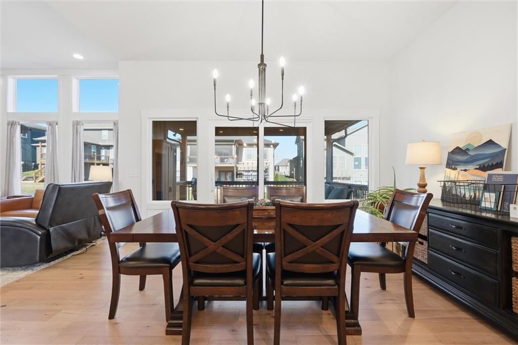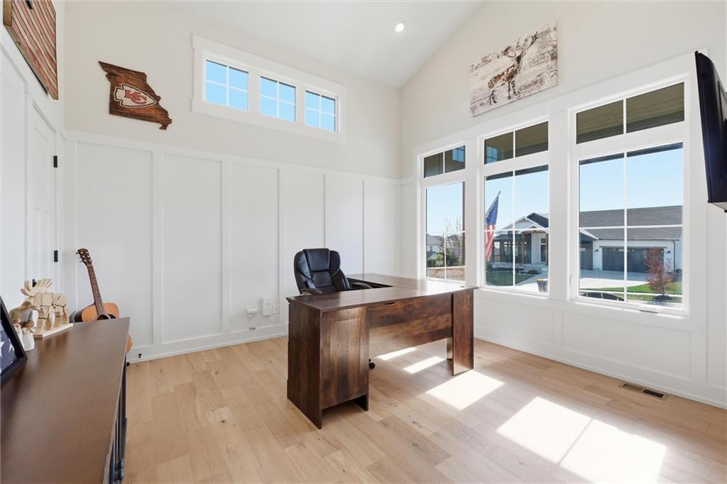 This home is better than new and move-in ready! Save time and money with this already upgraded home featuring an open floor plan for easy entertaining. The vaulted ceilings throughout the main living spaces make it feel spacious, and the hardwoods make it feel warm. Kitchen is beautiful with open shelving to showcase your decor or favorite dishes, a custom vent hood, a large island with seating, granite countertops. The walk-in pantry can fit all your bulk orders PLUS it has electrical to hide your countertop appliances. Primary bedroom is on the main floor with a massive closet that opens to the laundry room for the ultimate convenience. Dedicated office with closet on the main floor could make a great play room, sitting room or hobby room. Completely finished basement with 3 additional bedrooms and a family/rec room that walks out to the patio, great for enjoying an evening outside by the fire pit.