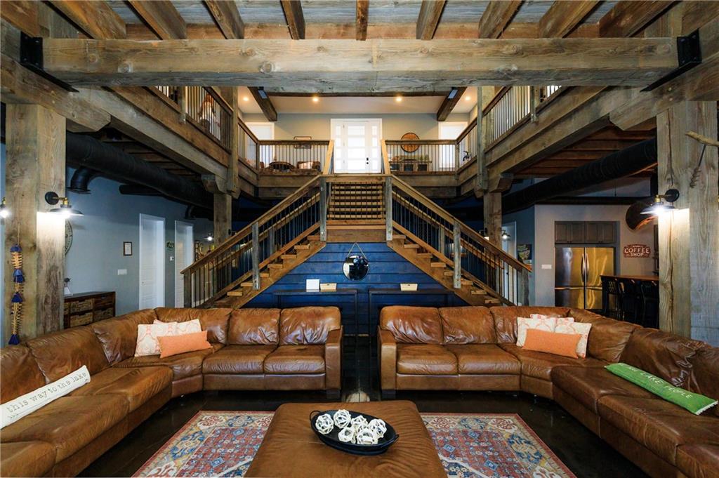 Show-stopping waterfront retreat on 8mm w/spectacular lake views! Impressive work of craftsmanship features reclaimed wood + shipyard beams, custom lighting, & heated floors. This stately, open-concept creates a tranquil feel of rustic sophistication - completely furnished. Striking architectural impact, designed for resort-style living or high-end short term rental earning $2k per night (proven $150k+ yearly), this sprawling estate is built to please a crowd. Gourmet chef’s kitchen boasts state-of-the-art commercial-grade stainless steel appliances w/ impressive 17-ft custom island. Sleeping 25+, this iconic estate offers 6 unique king bedrms, each w/full spa-style baths, incl 2 primary suites w/sitting areas + covered decks. Addl Bunkhouse sleeps 11. Epic game room incl professional-grade pool table & shuffleboard for endless fun. Outdoors, enjoy a massive screened-in patio w/ locker-room-style bathroom - quick outdoor access for swimmers & boaters. Above 2-car garage/workshop - luxury 2-bdrm apartment + loft bed- sleeps 6, perfect for rental. Metal Roof. Deep water, 2-bay concrete cruiser dock + 2PWC lifts. Unparalleled waterfront sanctuary that defines upscale vacation living.