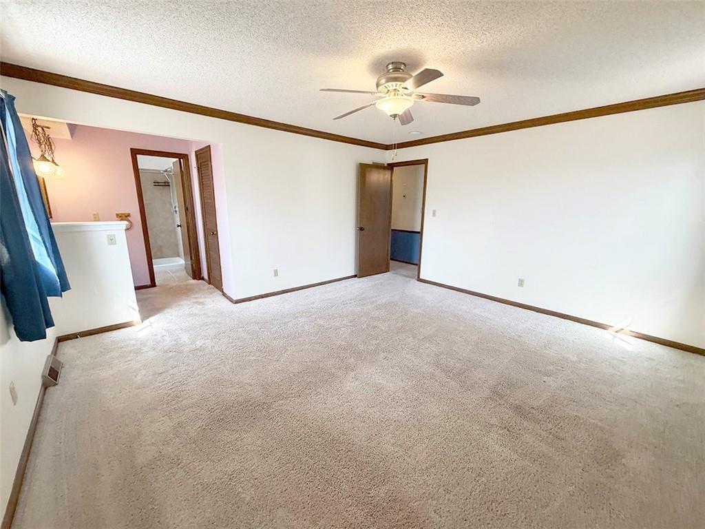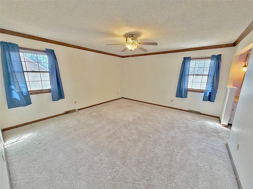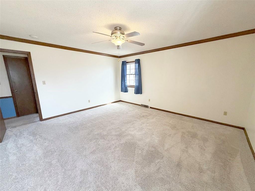 JUST LISTED.. GOING GOING GONE! Need 4 Bedrooms?? this will be a good one. Room, Closet and window in lower level. Open spacious floor plan with oversized entry. Soaring vault in Living room with Masonry fireplace and opens to breakfast area. Formal dining just off kitchen. Kitchen just redone with granite countertops. Builtin Butler station in Breakfast room that walks out to maintenance free 18x11 deck with patio as well. Storage shed. Lot is HUGE and fenced. Oversized 27'x25' garage. Finished lower level has built-in huge desk and wood burning stove. More siting type area and a 4th almost conforming bedroom. Master bedroom is oversized with large walkin closet and private bath