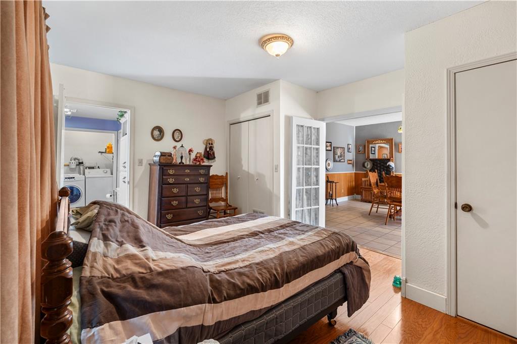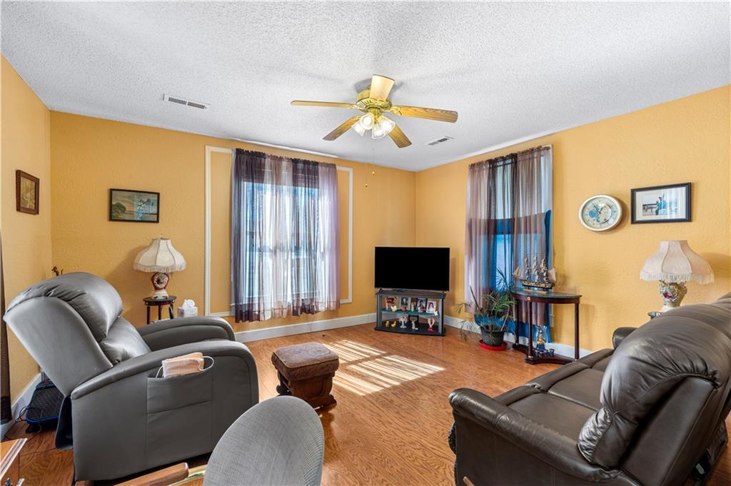 This 2 bedroom, 2 bathroom bungalow offers approximately 1,300 square feet of living space with a practical layout and flexible room options. Wood appearance flooring runs through much of the home while vinyl windows allow natural light to fill the main living areas. The formal dining room sits at the heart of the home and serves as a welcoming space for gatherings and everyday meals. The living room flows easily into the dining area, creating a natural connection between the main living spaces. The kitchen provides ample cabinet storage, generous counter space, and a convenient breakfast bar. A main level laundry area located just off the kitchen adds everyday convenience. Both bedrooms are generously sized, including a primary bedroom with a private bathroom featuring a walk-in shower. The second bathroom is accessible from the second bedroom and is also conveniently located for guest use. An additional room offers flexible space that could serve as a home office, hobby room, or extra storage. The layout also provides the option to create a third bedroom if desired, with the current living room easily transitioning into bedroom space while the formal dining room could serve as the main living area and the spacious kitchen accommodate an eat-in dining setup. Outside, the property features a covered front porch, an attached garage with rear entry access, and a detached shed for additional storage. Rear alley access provides convenient garage entry while on-street parking is available at the front of the home. Located in Rich Hill, Missouri, this bungalow offers flexible living space and approximately 1,300 square feet of living area.