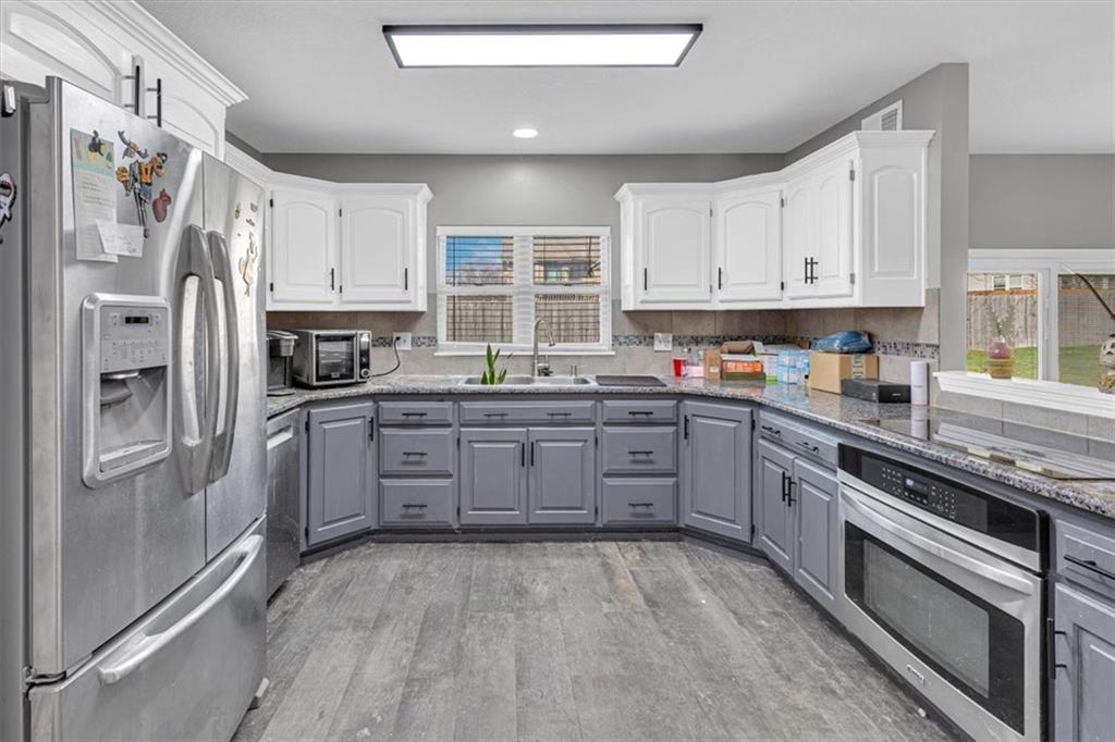 From the moment you pull up, this home makes an impression. Beautiful landscaping accented by stamped concrete edging sets the tone for the charm and character you’ll find throughout. Inside, you’ll love the spacious and functional floor plan featuring a main-level primary suite, an open living room, and a welcoming family room with a gas fireplace that creates the perfect gathering space. The kitchen is both stylish and practical, offering granite countertops, painted cabinets, stainless steel appliances that stay, and a pantry for added convenience. Privately positioned away from the main living areas, the primary suite feels like its own retreat with a whirlpool tub, double vanity, walk-in closet, and room to truly relax. Upstairs, the oversized loft adds incredible versatility and can easily become a game room, second living area, office, or entertainment space. The generously sized secondary bedrooms offer room for everyone, including two bedrooms connected by a Jack-and-Jill bath. Even better, the upstairs laundry room makes daily living easier and more efficient. The fourth bedroom features an oversized walk-in closet that will definitely stand out. The basement is already prepped for future finishing with framed walls and electrical in place, making it easy to add more living space while still maintaining excellent storage. Step outside to enjoy a partially fenced backyard complete with a gazebo, creating a comfortable outdoor space for relaxing, entertaining, or enjoying time with pets. Additional highlights include newer LVP flooring and carpet installed in 2021, along with a seven year old roof and HVAC that is only six years old. Situated in the highly desirable Barry Harbor neighborhood, this home offers convenient access to major interstates, shopping, restaurants, grocery stores, and home improvement retailers.