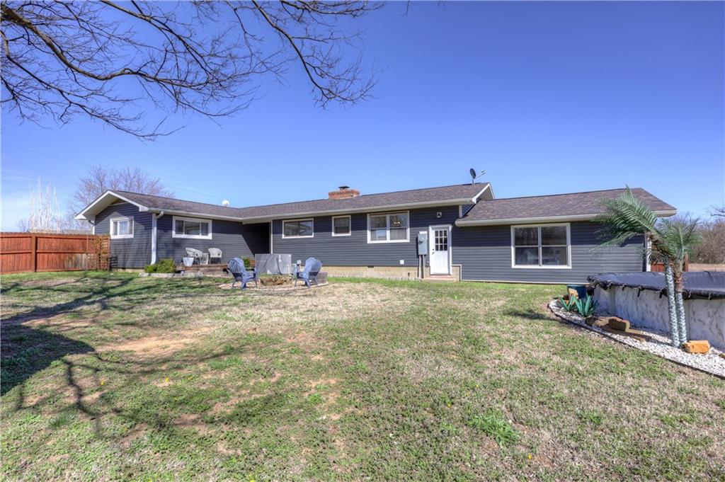 This beautifully remodeled ranch-style home sits on over an acre along a paved road and is sure to take your breath away. Updated inside and out, this stunning 4-bedroom home is truly move-in ready and ready for you to make it your own. From your front door, you can often enjoy peaceful views of local wildlife, which adds to the property's quiet country charm. Step inside to an open, fresh interior featuring new flooring, granite countertops, stylish light fixtures, a charming whitewashed fireplace, and new windows throughout. Major updates include a new roof in 2021, along with a new HVAC system and hot water tank installed in 2022. The fourth (non-conforming) bedroom, conveniently located just off the laundry room, would also make an ideal home office, hobby room, or flex space to fit your needs. Outside, you'll find a 24-foot above-ground pool with a deck and beautiful perennial landscaping--perfect for relaxing or entertaining. A 30x38 concrete pad offers excellent potential for a future shop or additional building, and the new shed and carport will stay with the property. To make the move even easier, the sellers are leaving the dishwasher, refrigerator, microwave, stove, all three bedroom suites, and the living room furniture--making this home even more ready for its next owners.
