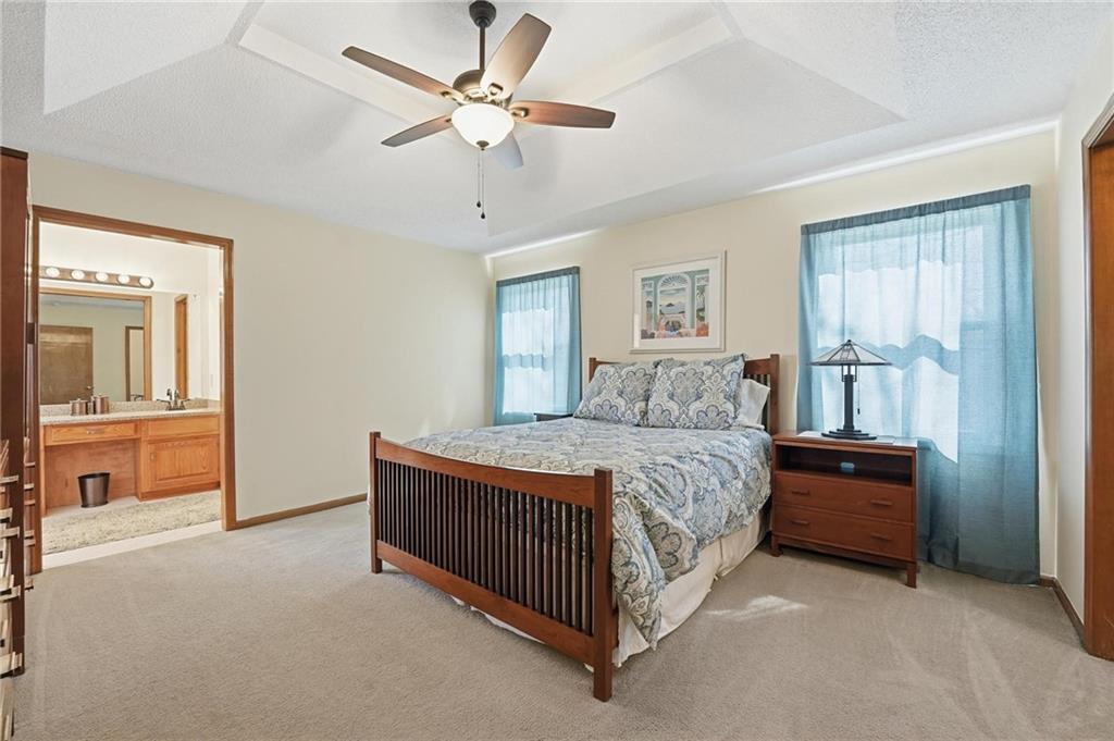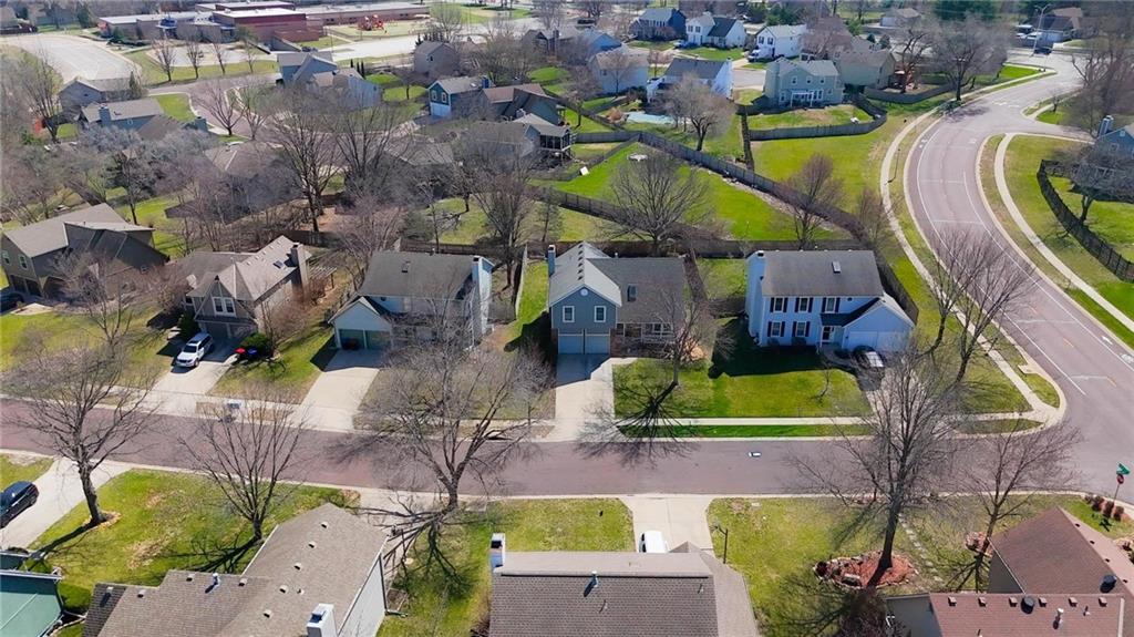 Welcome to Willow Bend at the Village! Conveniently situated minutes away from grocery stores, hospitals, restaurants, the Arboretum, bike paths, walking trails and the newest addition to the entertainment offerings in Overland Park-AdventHealth Sports Park at Bluhawk. This property is located on a quiet cul-de-sac near Stanley Elementary and Blue Valley High School, both of which are in the award-winning Blue Valley School District. You are welcomed with a charming front porch, a two-car garage and an extended patio in the backyard for outdoor gatherings. Aside from its excellent location, this home has been meticulously maintained by its original owner and offers comfort and numerous thoughtful updates including a new furnace, new A/C unit, windows and cement-fiber siding. The two-story layout features four bedrooms upstairs, each with generously sized closets, along with a conveniently located second-floor laundry room. The spacious primary suite includes a large walk-in closet, a double sink vanity, freestanding tub, separate shower, plus an adjoining flex room ideal for a sitting area or office. The eat-in kitchen is open to the living room and the formal dining room is conveniently adjacent. All appliances remain—including the washer, dryer, and refrigerator. Additional updates such as smoke detectors and hardwired fire alarms reflect the careful attention given to maintaining a safe and well-cared-for home. Bring your buyers and see for yourself!