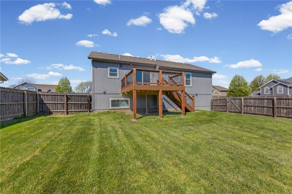 ** BACK ON MARKET AT NO FAULT OF SELLER** Spacious and move-in ready! This well-maintained 4 bedroom, 2.5 bath home with a rare 3-car garage offers the perfect blend of comfort and functionality. The main level features beautiful hardwood floors, vaulted ceilings, and large windows, creating a bright and welcoming atmosphere. The three main-level bedrooms have new, neutral carpet to fit any style. The kitchen offers a walk-in pantry for excellent storage and real wood kitchen cabinets. The lower-level, spacious, 4th bedroom, could alternately be used for additional living space for relaxing or entertaining. If you were hoping for a large laundry area for washing, folding and storage, you will appreciate this designated space! Step outside to enjoy the large back deck with stairs leading down to a massive backyard, complete with a privacy fence—perfect for gatherings, play, or simply enjoying the outdoors. A fantastic home offering space, updates, and a highly desirable 3-car garage!(Updates include windows, back deck, front & back door, wood floors & carpet).
