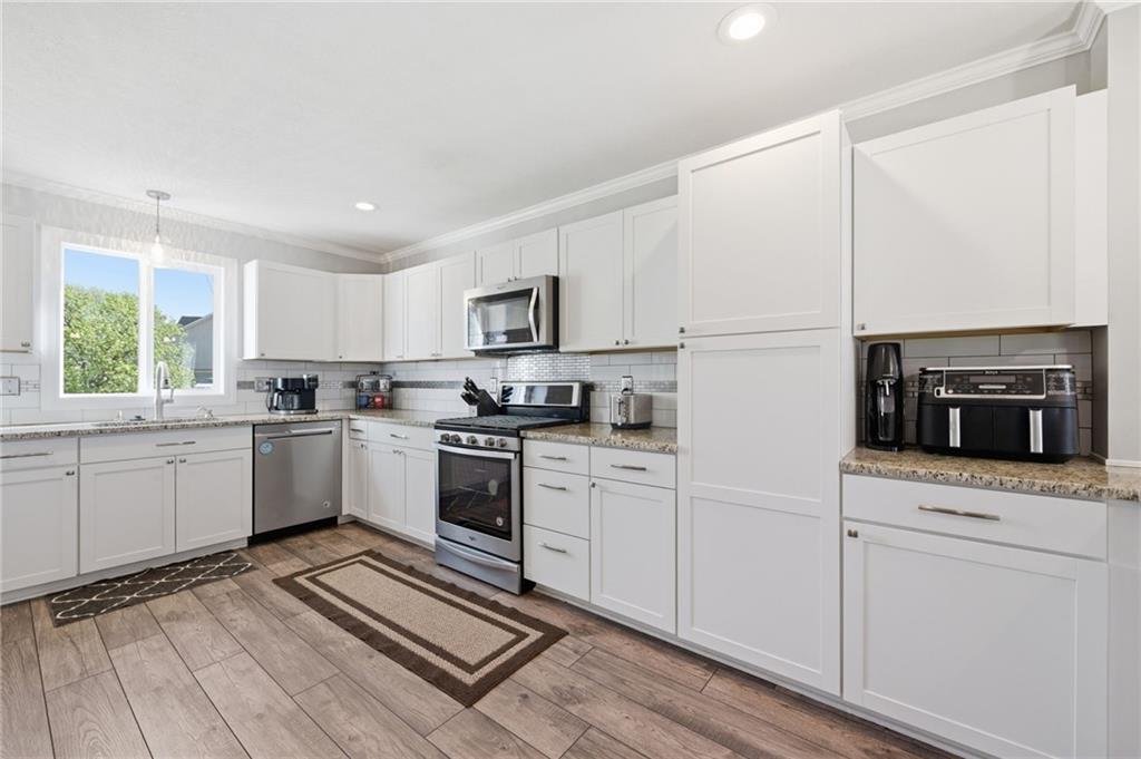 Welcome to this beautifully updated California split in sought-after Platte County! Situated on a spacious lot, this home offers the perfect blend of comfort, style, and functionality. Step inside to find soaring ceilings, a stunning fireplace feature wall, and an open-concept layout designed for both everyday living and entertaining. The kitchen boasts modern finishes, ample cabinetry, and seamless flow into the main living areas. Generous bedrooms and well-appointed bathrooms provide space for everyone, while the finished lower level offers additional room to relax or host. Enjoy the privacy of the backyard along with the convenience of being just minutes from Zona Rosa, major highways, and KCI Airport. This is Northland living at its best—don’t miss your chance to call it home!