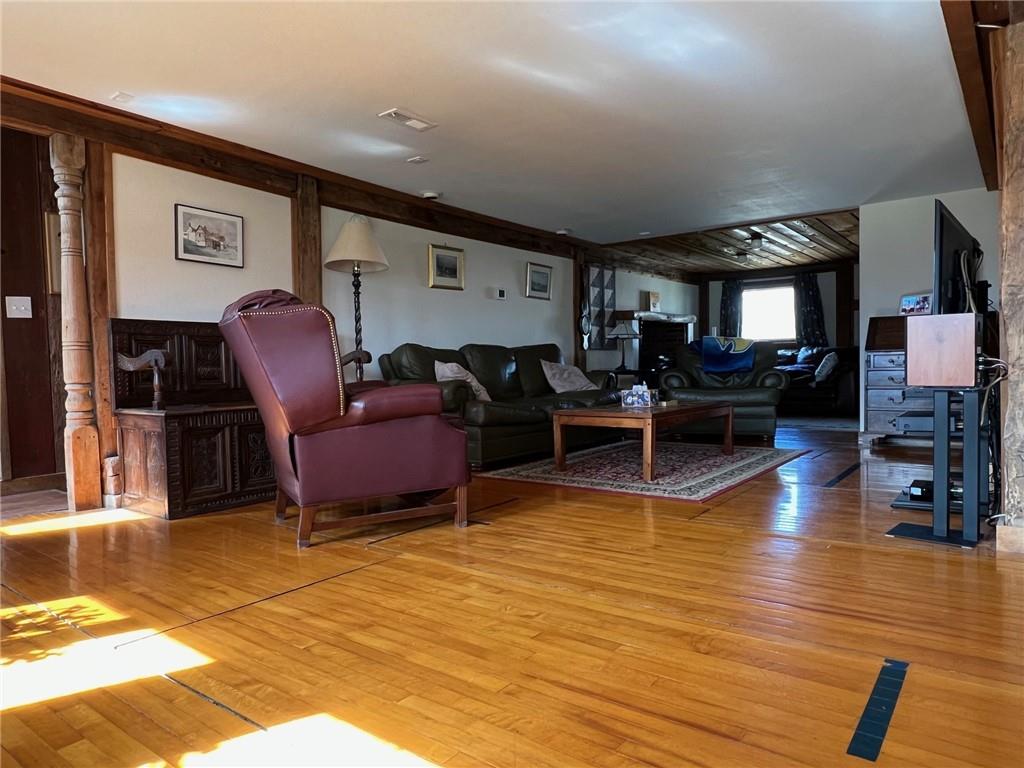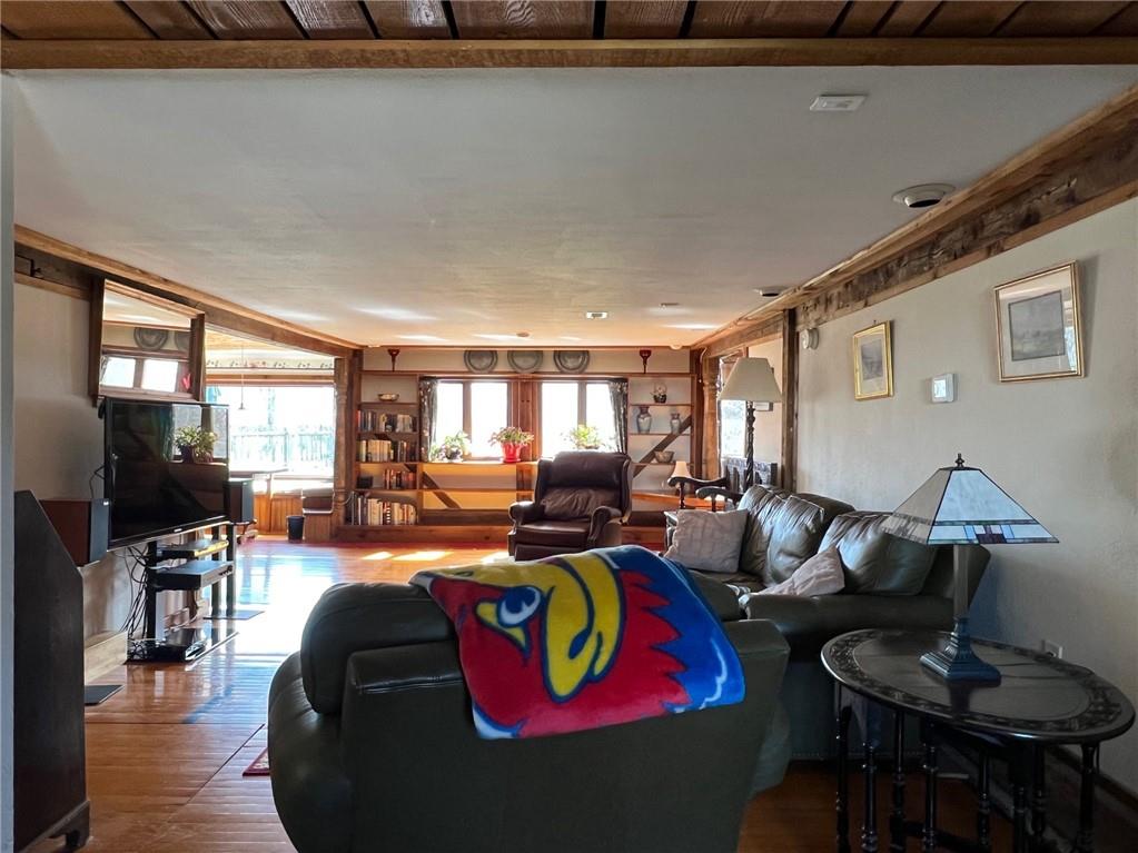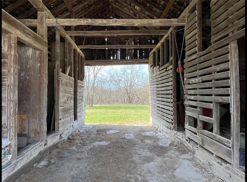 Located 8 miles south of Lawrence in the unincorporated town Pleasant Grove. The unique barn home conversion resides on one of the highest plateaus in Douglas County on 11 acres. This Gable Barn with a hay mow was part of an early European settlement in the 1870s. For approximately 100 years it served as a barn for a productive dairy farm. In the 1970s it was converted into a home. The Brown family had the opportunity to purchase the original basketball flooring from Allen Fieldhouse. They repurposed all the flooring except the K piece, installing it in throughout the home. Much of the 3,600 square feet contains this flooring. Just think, famous basketball player played on this floor! The current owners have enjoyed being the stewards for 20 years, improving the property with recent bathroom and kitchen renovations, new double pane windows and a high efficiency HVAC system. The property contains a mix of green space and old growth timber to the west. The compound still retains a grain silo, old windmill pump, barn, 1950s storage building (could be an art studio or office) and a newer one car garage. This is a magical place. It gushes with a rural Kansas vibe and rich KU basketball history. Who’s next?