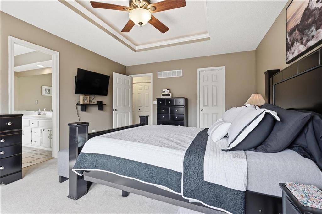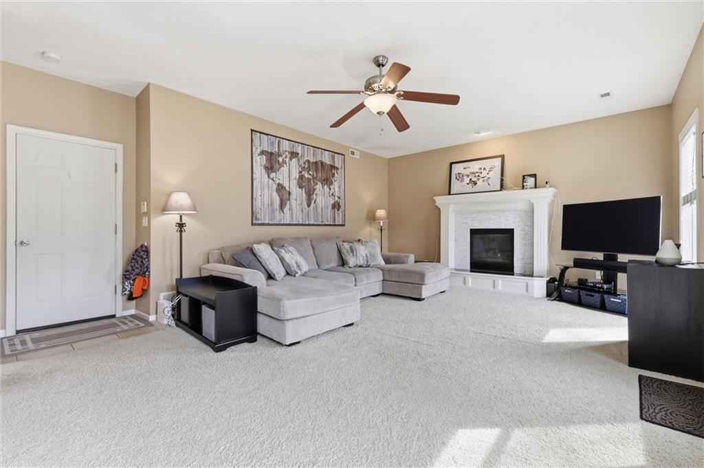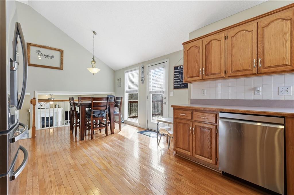 Discover this spacious and well-maintained 4-bedroom, 3-bath home featuring an oversized 3-car garage. Upon entry, you’ll find two inviting living areas and beautiful hardwood floors that extend through the kitchen and breakfast nook, highlighted by vaulted ceilings that create an open and airy feel. The Kitchen features NEW stainless steel appliances, tons of cabinets and ample counter space, overlooking the second family room, where there is a cozy gas fireplace that adds warmth and charm to this home. To top it off, this home offers a generously sized primary suite with vaulted ceilings, a walk-in closet, and an en-suite bath complete with a jetted tub and double vanity. For added convenience, three bedrooms and the laundry room are located on the same level. And the finished basement includes a private fourth bedroom with its own entrance and bathroom—ideal for guests, extended family, or added privacy. Step outside to a backyard that backs to a wooded area, providing privacy and a setting perfect for entertaining. Conveniently located with easy access to I-35, this home offers both comfort and accessibility. NEW Roof, gutters, and gutter guards in 2019, NEW HVAC in 2018, NEW Insulation in 2017!
