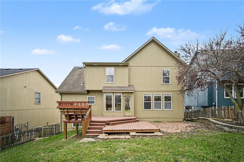 Four-bedroom, 3.5-bathroom home in Shawnee’s desirable Wedgewood Huntington neighborhood, featuring a functional layout and a finished basement! This residence offers a classic main-level floor plan with a formal dining room and a comfortable living room highlighted by a cozy fireplace that opens to the breakfast area and a kitchen that is designed for efficiency. All bedrooms are located on the second floor, including a grand primary suite with coffered ceiling and an expansive ensuite. The primary bath features dual sinks, a jetted tub, and a separate standing shower, alongside a large walk-in closet. The fully finished basement serves as a premier entertainment space, complete with a built-in bar area and a full bathroom. An additional unfinished section provides ample room for seasonal storage. Ideally located in the heart of Shawnee, this home is just minutes from shopping at Shawnee Station and the various amenities of the Shawnee Mission area. Commuters will appreciate the quick access to I-435 and Shawnee Mission Parkway, ensuring a smooth drive to regional employers and downtown Kansas City. Schedule your private showing today!