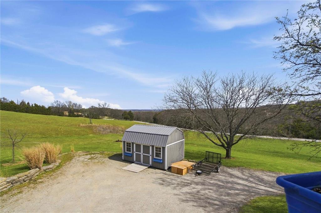 Set just north of Lawrence in the scenic Twin Ridge Heights West rural subdivision, this extraordinary 5.6-acre property offers a rare opportunity to own the personal residence and creative sanctuary of beloved Lawrence artist Louis Copt and his wife, Phyllis. Designed and built in 2002, the home reflects a lifetime devoted to art, craftsmanship, and intentional living. Inspired by the architectural principles of Frank Lloyd Wright, this vertical prairie-style home features expansive overhangs, strong lines, and a seamless connection to the surrounding landscape. Inside, the dramatic living room rises to 20-foot ceilings, anchored by a striking fireplace that uniquely backs to a wood-fired pizza oven imported from Italy—blending function, artistry, and gathering space into one unforgettable focal point. The home itself serves as a canvas, with artistic contributions from local talents Barry Fitzgerald and Kate Dineen woven throughout. Natural light pours into every space, enhancing both the architecture and the home’s gallery-like quality. Currently configured as a 2-bedroom, 2.5-bath residence, the main level includes a large open studio where Louis created much of his work. This space offers flexibility and can easily be converted to an additional bedroom and bathroom. Thoughtfully maintained, the home features a tankless water heater, a new roof in 2022, and a new septic tank installed in 2023. Outdoors, enjoy a peaceful setting with a sauna garden and sauna, storage shed, gardening shed, vegetable garden, and native landscaping. An additional 5-acre parcel directly north is also available (MLS #2605277), offering expansion potential or added privacy. A truly rare offering - where architecture, art, and place come together in a way that is nearly impossible to replicate. Disclaimer: Sight unseen offers may be accepted by the Seller. The Showing Begin Date is subject to change.