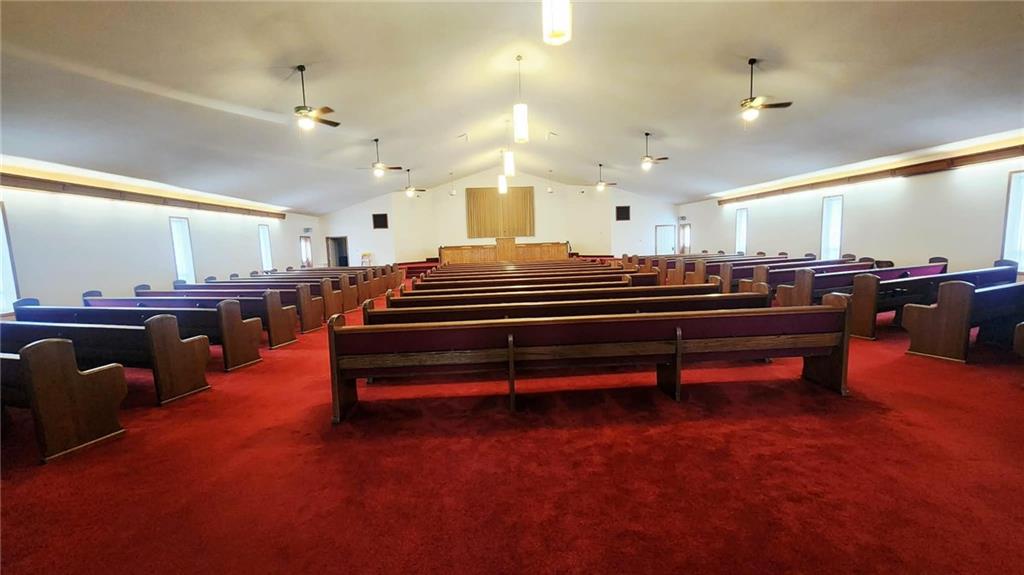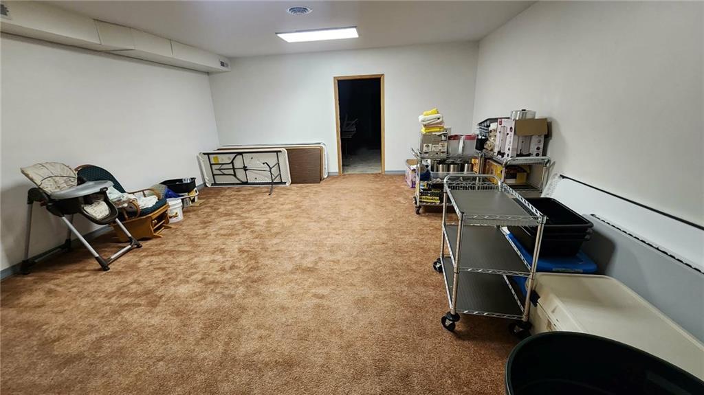 Are you looking for a commercial property that has endless options. Sitting on almost 10 acres the property can be used for multi purposes. The building is almost 9000 sq ft and is suitable for office space as well as a multi purpose facility. There are no stairs to utilize the main level. There is an open span room on the main floor with a center ceiling height of approximately 20ft with space in the front that could be a stage with a sound system or it could be used for light warehouse or climate controlled storage. The front and foyer has multiple rooms for conference rooms, there are bathrooms available at the front and back of the building on the main floor. There is a front and rear stairway to the fully finished basement which has restrooms, a huge open area with multi use opportunities and a large full kitchen as well as a kitchen storage room with two utility sinks and open shelving. In the rear of the basement are 10 rooms, 7 of which are currently used for classrooms and one room for storage and mechanical equipment. There is also outside stairway access to the basement as well as from inside the building. Outside, there is a large attached covered carport/covered entry and a large parking area with parking to accommodate around 300 cars as well as a 2 car garage/shop/storage building. The remainder of the 9.9 acres can be used for any number of options. The opportunity for additional buildings/other business opportunities is endless with enough land to the south and west to accommodate multiple buildings. There are multiple ch/ca units in different areas of the building to insure adequate climate control throughout the building. Call and set up and appointment to see this amazing property.