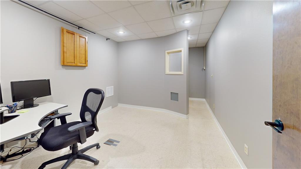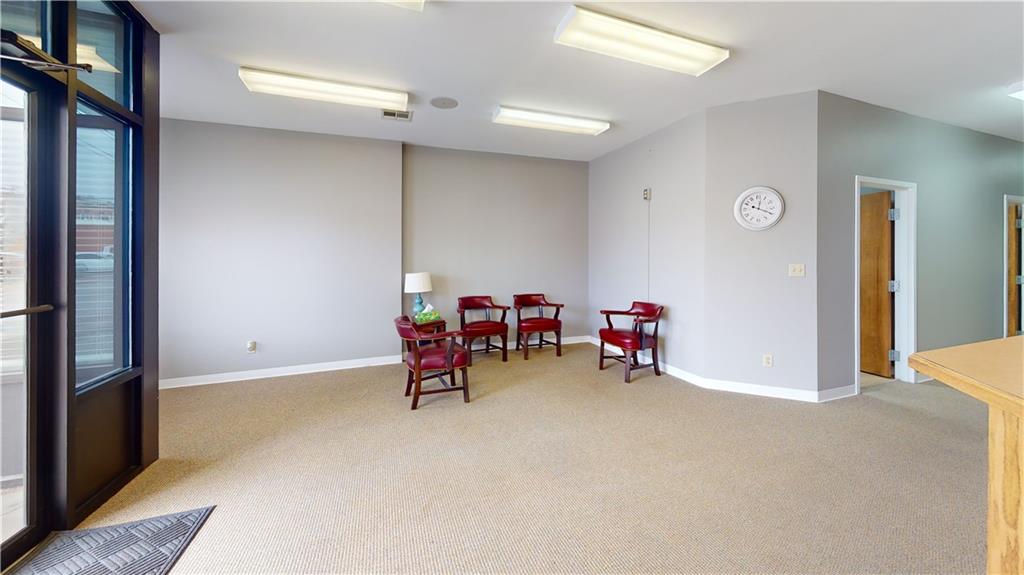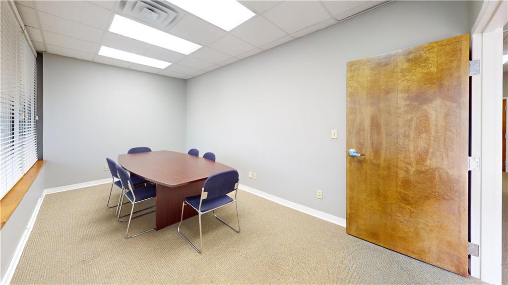 Highly functional and modern professional office suite available for lease at an exceptional value of $900.00 per month. This updated space features clean finishes and a thoughtful layout, offering four private offices and a formal conference room perfectly suited for a growing business. Clients are welcomed into a large, bright waiting area with a dedicated front desk reception counter, while the back-of-house includes a functional copy room and ample storage closets for organizational efficiency. The suite is equipped with two restrooms: one ADA-accessible half-bath for guests and a private, employee-only bathroom conveniently situated within the copy room area. This turnkey professional environment is offered on a straightforward 12-month lease, providing a polished and move-in-ready solution for legal, medical, or administrative professionals. Tenant will receive one free advertising slide on the building’s electronic billboard included with the lease.