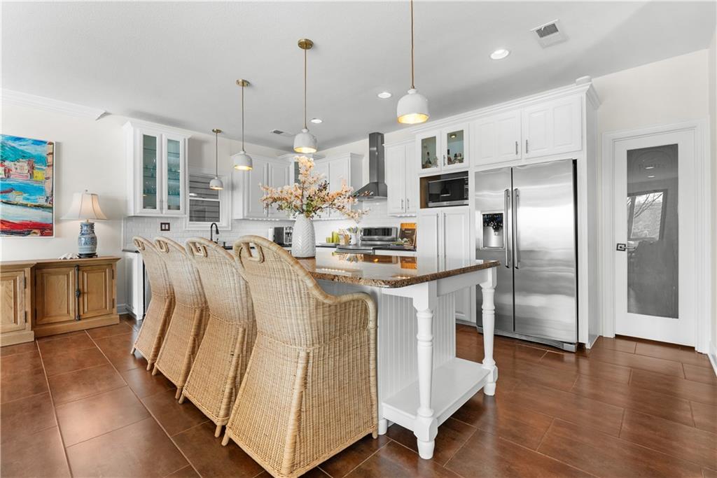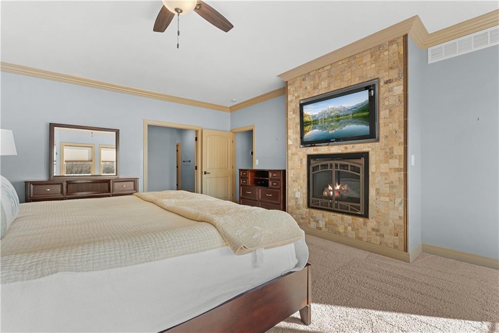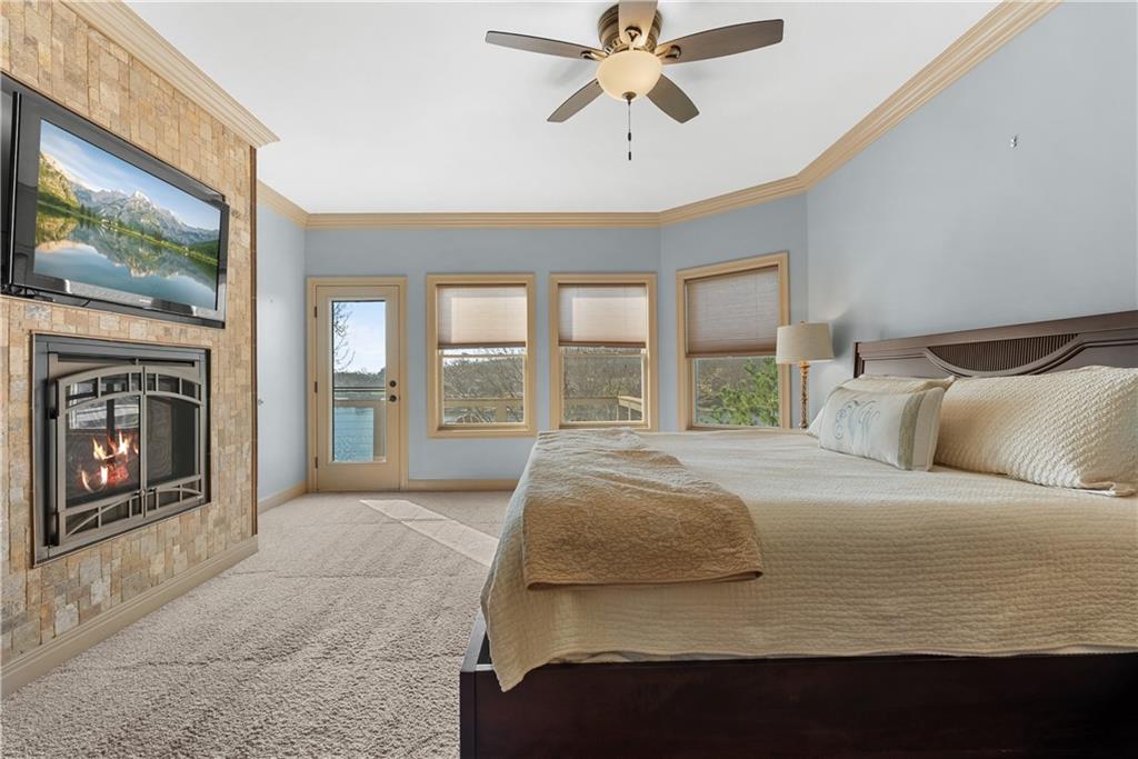 Experience exceptional lakefront living in this stunning main-channel home offering deep water and breathtaking views. Perfectly positioned with a double-well dock and boat lift and sun deck, this property is designed for both relaxation and recreation. The beautifully landscaped grounds lead to a thoughtfully designed home featuring a spacious 4-car garage and high-end finishes throughout. Inside, the gourmet kitchen boasts a walk-in pantry and flows seamlessly into a formal dining room and an impressive great room with a fireplace. The true showstopper is the wall of "moving glass wall", creating a completely unobstructed opening that blends indoor and outdoor living while showcasing the lake beyond. Step outside to a lakeside Trex deck spanning the length of the home, complete with a sunken hot tub, or unwind in the enclosed screened-in patio. The luxurious primary suite offers its own fireplace, private balcony with panoramic lake views, and a spa-like bath with separate vanities and a spacious closet. Two additional lakeside bedrooms provide incredible views and access to a screened-in deck, while a generously sized fourth bedroom above the garage offers added privacy. Designed for entertaining, the expansive family room that is ideal as a man cave or bunk room—features another fireplace, making it the perfect gathering space for family and guests. This is lake living at its finest.
