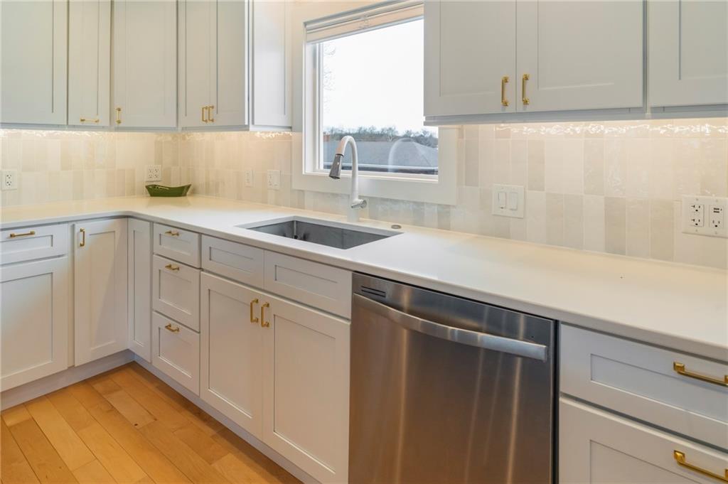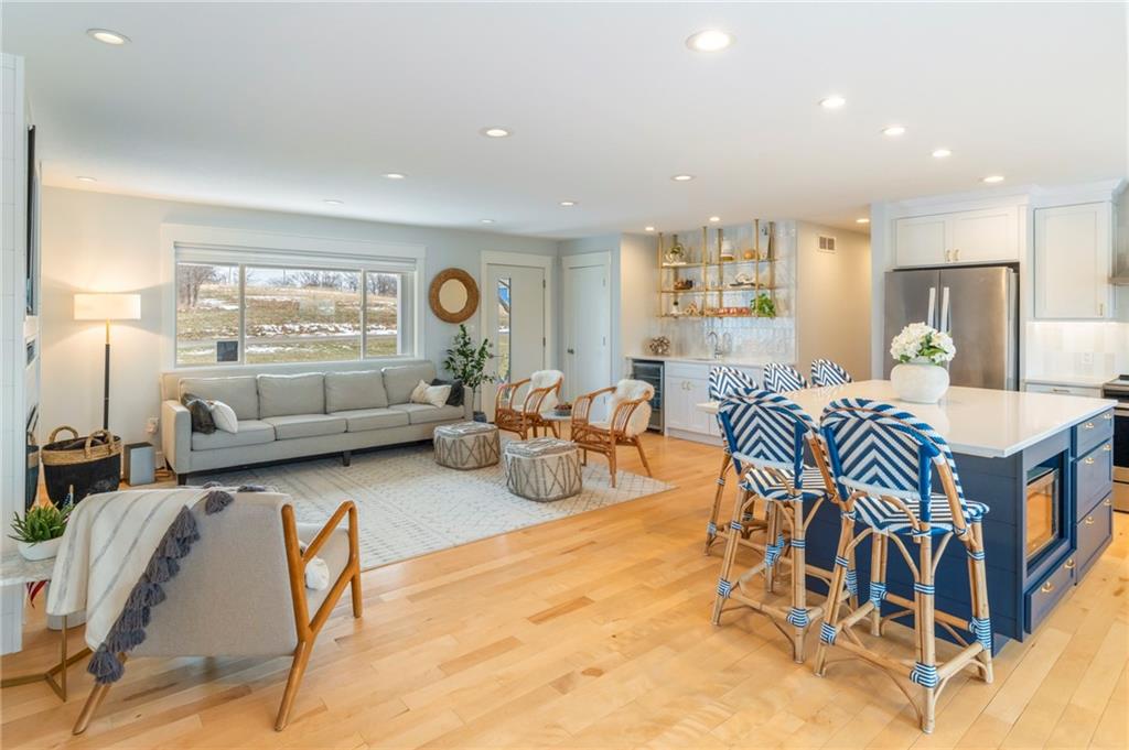 Modern, fun, and Turn-Key, this lakefront retreat is ready for you to enjoy! This beautifully remodeled 5-bedroom waterfront home is designed for ultimate summer living, complete with a dock and pavilion perfect for soaking up the sun. Move-in ready and thoughtfully designed for comfort and convenience, the home features two kitchens, two laundry areas (one on each level), and five spacious bedrooms. Step outside and enjoy the spacious deck, beautiful sidewalk down to a concrete patio right at the water’s edge, creating the perfect setting for relaxing or entertaining. Inside, you’ll love the bright, refreshing finishes that truly bring lake life to life. The main level showcases a soothing color palette, hardwood floors, and updates throughout, including new HVAC, plumbing, electrical, siding, and windows, this home has been remodeled down to the studs. The kitchen features stunning quartz countertops, stainless steel appliances including a dishwasher, and a stylish wet bar. The lower level is just as impressive, offering a second kitchen with dishwasher, eat-in dining area, 2 bedrooms, and two twin-to-king trundle daybeds. Additional highlights include built-in cubbies, banquette seating, and beautifully tiled bathrooms. Conveniently located near the main entrance and just moments from the clubhouse, salt water pool, marina, and beach, you’ll love having summer fun right at your fingertips—including food trucks within easy reach. Lake life is calling, don’t miss your chance to make it yours! The yard is in the process of being seeded and reworked due to newly installed lawn irrigation and recent improvements.