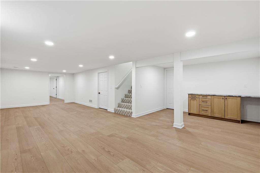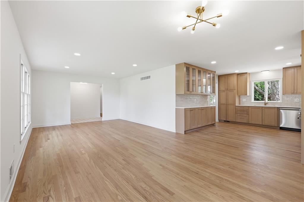 Beautifully updated ranch in the heart of Overland Park, perfectly situated on a spacious corner lot with a fenced yard. This 4-bedroom, 3-bath home offers true main-level living with a thoughtful blend of timeless design and original character. The main floor features an open, connected layout where the living room flows seamlessly into the dining area and kitchen—ideal for both everyday living and entertaining. The fully renovated kitchen features stunning white oak cabinetry, a hidden microwave and trash, and a thoughtfully designed coffee bar with glass upper cabinets to showcase glassware or curated pieces. A second hearth living space creates a cozy retreat, perfect for relaxing evenings. The primary suite is designed with comfort and convenience in mind, featuring a large walk-in shower, double vanity with built-in outlets to keep countertops clutter-free, and a spacious walk-in closet. All closets throughout the home include custom strip lighting for an elevated, luxury feel. Downstairs, you’ll find a fully finished basement offering incredible versatility—complete with a large living area, dry bar ready for a beverage fridge, second laundry room, gym or flex space, fourth bedroom with egress window, and a full bathroom. Every detail in this home has been carefully considered, from the layout to the finishes. All appliances are brand new, including a gas stove. The home is conveniently located near Franklin Park, featuring scenic trails and playgrounds, and is just a quick 2-minute drive to the shops and dining options at 95th & Mission. This is one you don’t want to miss—ready for its next owners to love just as much as it has been.