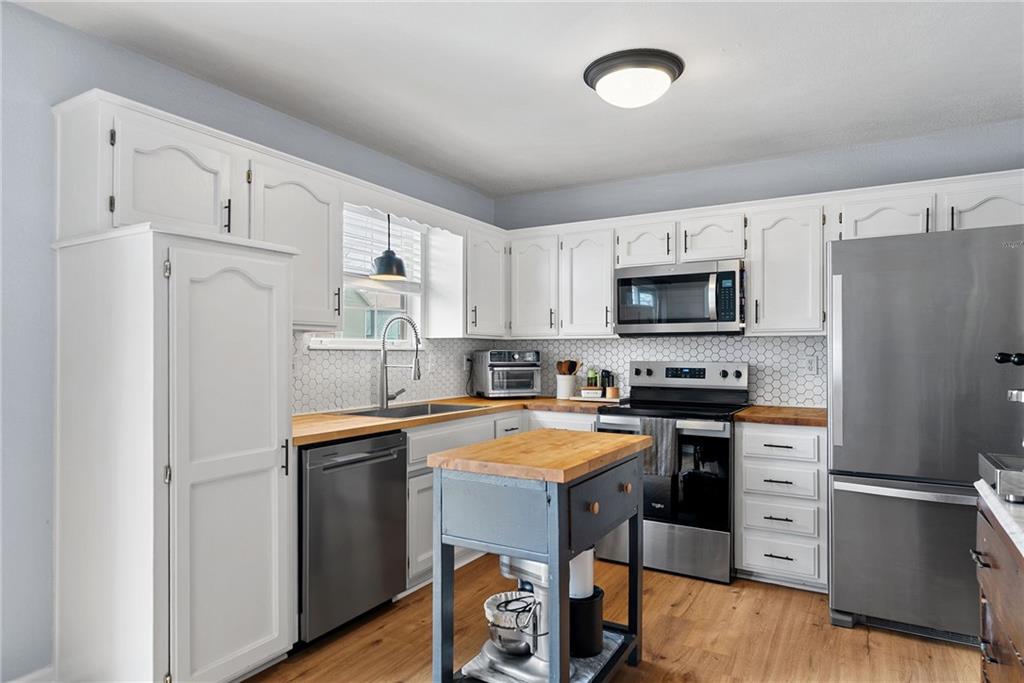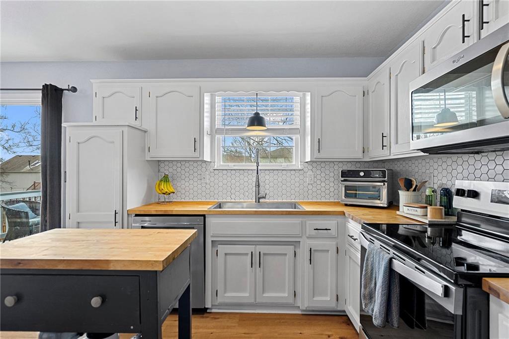 Beautifully updated split-level with great curb appeal! This immaculately maintained 3-bedroom, 2.5-bath home offers the perfect blend of updates, functionality, and pride of ownership. From the moment you arrive, you'll appreciate the fresh exterior paint, inviting front entry, and clean, well-kept appearance. Inside the home features fresh interior paint and new LVP flooring throughout the main living areas. The updated kitchen has stunning butcher block countertops, a tile backsplash, painted cabinets, a new sink, and newer appliances, creating a warm, entertaining space. The master bath has also been refreshed, including newly installed shower doors for a clean, updated feel. Don't worry, all the major systems have been well- maintained with a newer HVAC system (just 1.5 yrs old). The updated light fixtures and ceiling fans add a cohesive touch throughout the home. The finished basement is currently a workout space and can easily be transformed into a cozy family room, with the seller willing to add carpet. Step outside to enjoy the fenced backyard, perfect for pets, entertaining, or relaxing evenings. This home truly shows pride of ownership and is move-in ready!