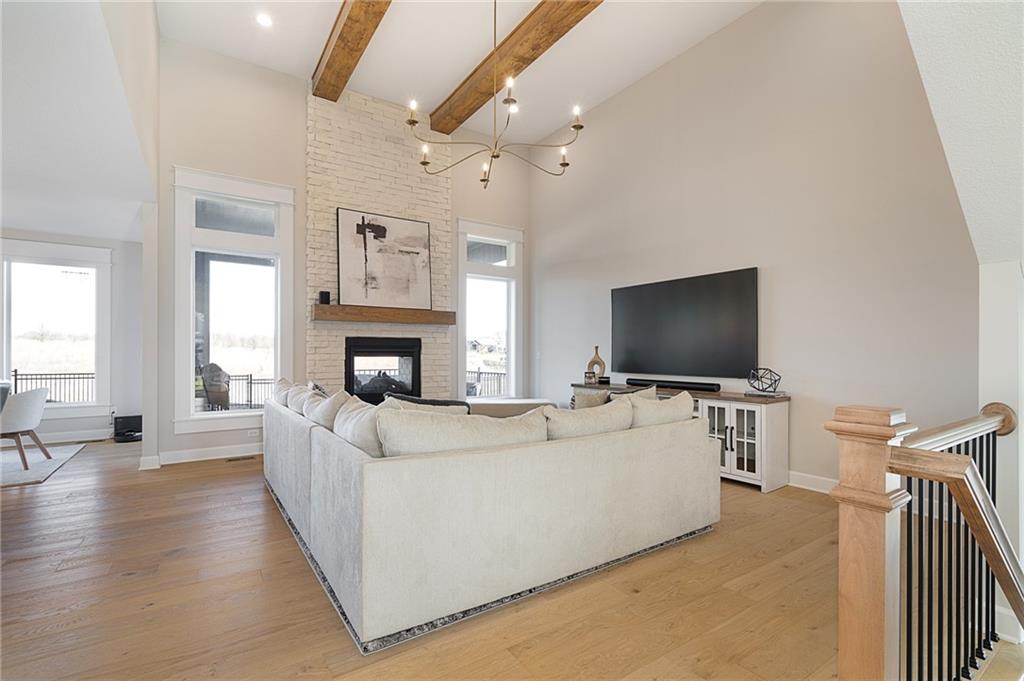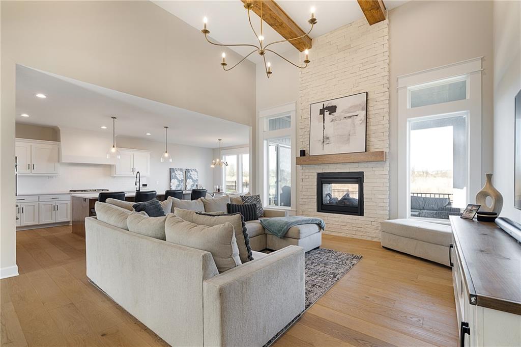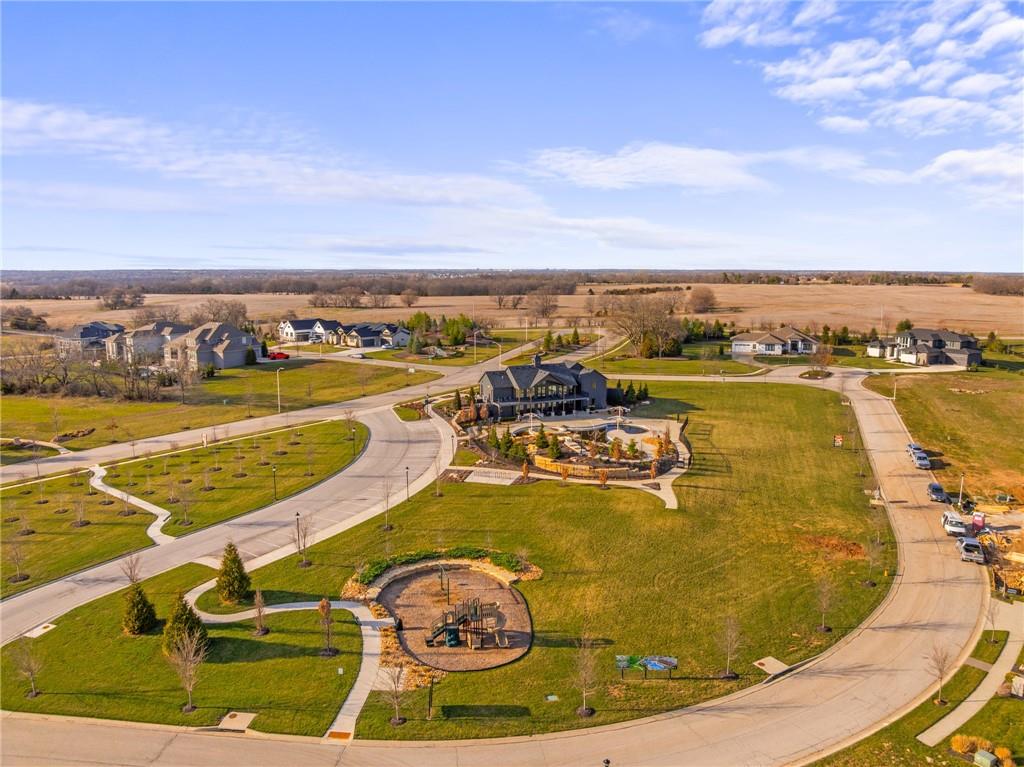 Stunning Award-Winning 1.5-Story will back to the future Blue Valley elementary school. This floor plan is designed for luxury and functionality. Thoughtful details include wood end caps, iron spindles, and vaulted ceilings, creating an elegant and spacious feel. The see-through fireplace seamlessly connects the great room to the covered patio, perfect for indoor-outdoor living. The center-island kitchen shines with painted cabinetry, offering both style and practicality. The main-level owner’s suite is a true retreat, featuring an oversized closet and a spa-like walk-in shower with dual shower heads. The office located off the entry provides the perfect work-from-home or study space. Tesla charger installed in garage stays with the home. Sundance Ridge’s premier amenities are now open! Enjoy a state-of-the-art fitness center, a resort-style pool, and scenic nature trails. Planned future amenities include a full gymnasium, pickleball and bocce ball courts, a playground, and a community garden. Clubhouse & first pool now open! Don’t wait—schedule your tour today!