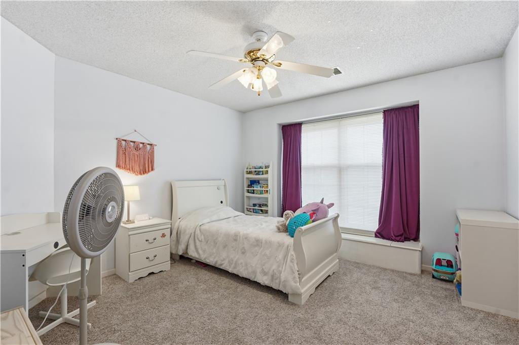 Tucked at the end of a cul-de-sac on an oversized lot in prime Olathe, this beautifully updated home offers the space, layout, and upgrades The open-concept main level features hardwood floors, abundant natural light, and a spacious family room anchored by a fireplace and dramatic floor-to-ceiling windows. The kitchen has been thoughtfully refreshed with quartz countertops, painted cabinetry, a new sink and faucet, plus an island, eat-in area, and ample counter space—perfect for everyday living and entertaining. The fully finished basement adds immediate value with a conforming bedroom, an additional non-conforming bedroom, and flexible living space ideal for guests, a home office, or multi-generational living. Upstairs, the primary suite offers tray ceilings, a sitting area, double vanity, and a walk-in closet. The secondary bathroom has been fully updated with new tub, tile, flooring, and fixtures. New carpet and updated flooring throughout give the home a clean, move-in ready feel. Major upgrades include new HVAC, new rear windows, extended patio space, and a full 6-foot privacy fence. The oversized backyard offers a peaceful setting with easy access to nearby walking and nature trails. Located within walking distance to the middle school and just minutes from elementary and high school options, this home checks every box with a rare combination of location, updates, and functionality.