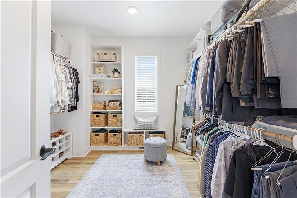 Bright and airy reverse 1.5 story designed for easy living and effortless entertaining. Luxury vinyl plank flooring runs throughout the main level, complementing the open floorplan and creating a seamless flow from room to room. A stunning wall of windows along the back of the home fills the space with natural light, making every area feel warm and inviting. The kitchen is both functional and beautiful, featuring abundant cabinetry and a large center island that’s perfect for gathering. The spacious primary suite offers a private retreat with a custom feature wall, direct access to the deck, dual vanities, a relaxing soaker tub, and a generous walk-in closet. A dedicated office on the main level provides the perfect work-from-home setup or quiet flex space. The walk-out lower level expands your living area with a large family room, wet bar, three additional bedrooms, and a second laundry room, ideal for convenience and hosting. Step outside to enjoy the large yard from either the covered deck or patio, perfect for relaxing or entertaining in any season.